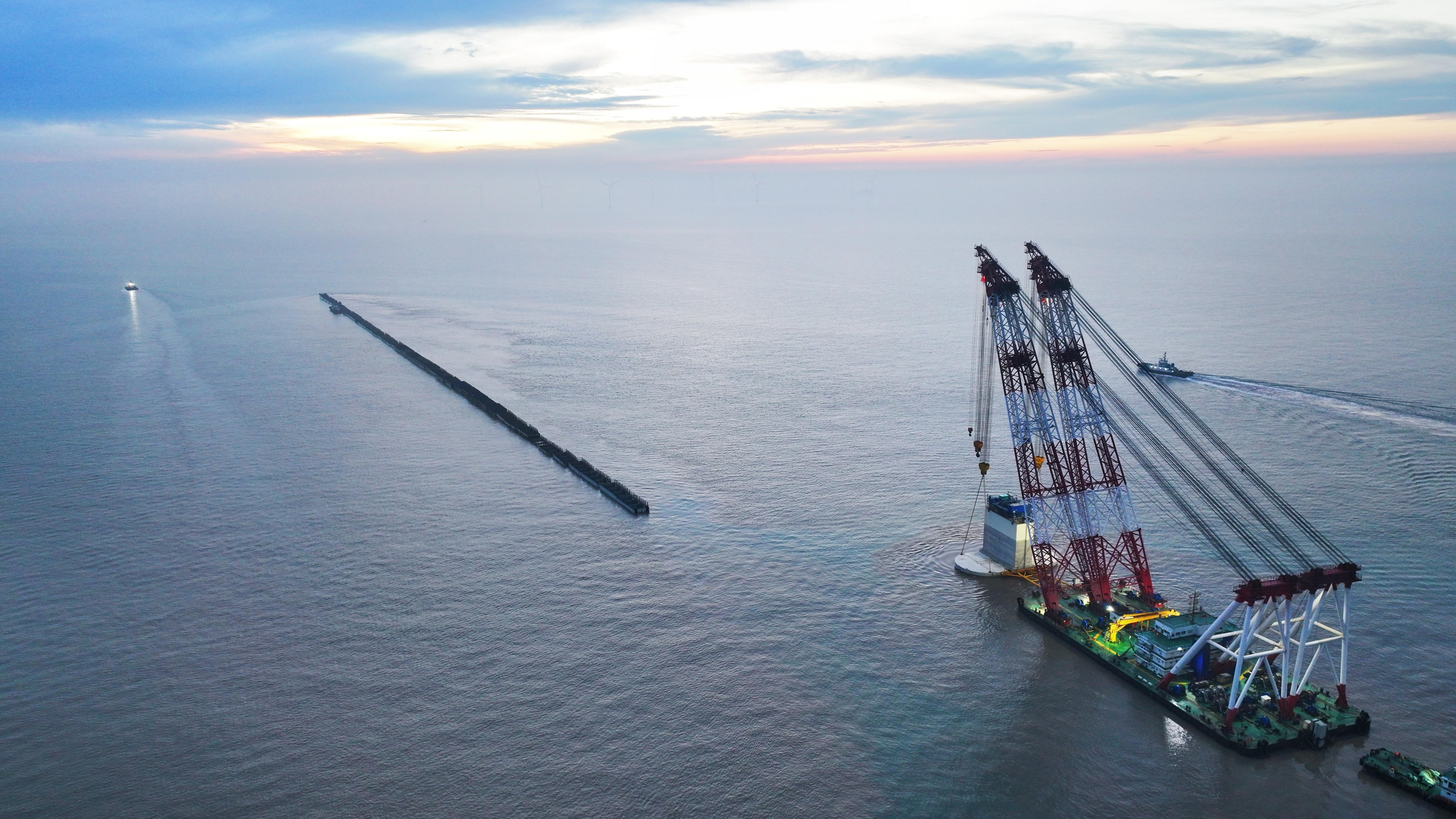 近日,随着最后一个桶式基础结构精准沉放,中交三航局承建的小洋山北作业区西防波堤项目6月至8月施工窗口期任务收官(如图)。项目在90天内完成了35个桶式基础结构的安装,占全年计划的50%,项目整体进度完成超60%。