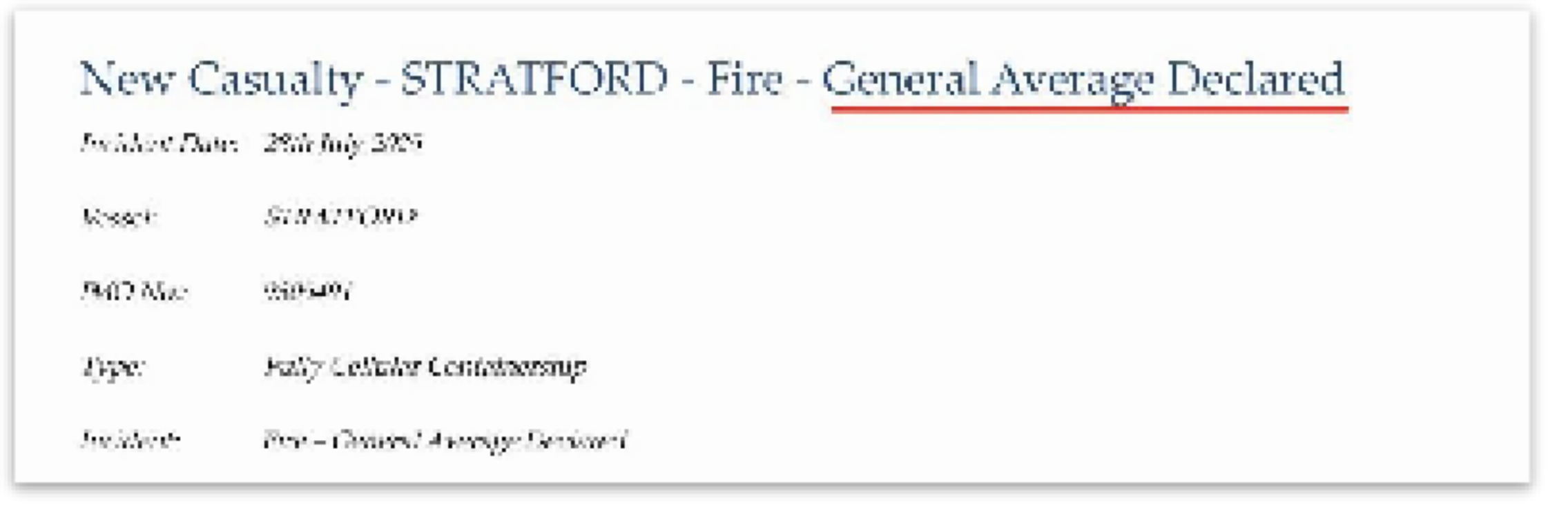 8月11日,鉴于为保障船舶与货物共同安全所采取的救助、灭火及避港措施产生重大费用,船长及船东依据提单中所载入的《约克—安特卫普规则》宣布共同海损(General Average, GA),要求所有货物利益相关方共同分摊由此产生的特殊牺牲与费用。德国不来梅的Groninger, Welke, Janssen & Partner GmbH被委任为共同海损理算师,负责损失分摊计算及流程协调。