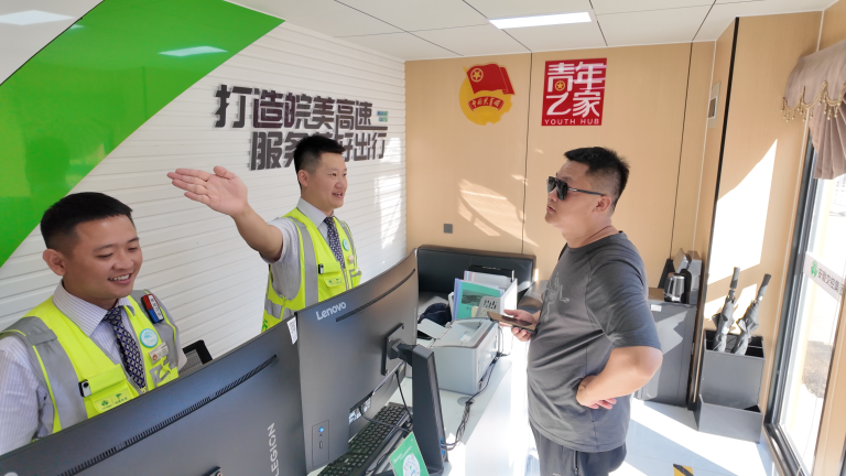 “90后”青年舒振宇,是土生土长的黄山人,带着8年收费站工作经验,在呈坎收费站开通后被选拔至此。他每日先细致排查收费广场、清理杂物、擦拭设备,再投入车辆疏导、问询解答与特情处置。如今,呈坎收费站“一站两址”的8条车道车流量已从日均1000余辆次增至最高1.3万余辆次,单日游客线路咨询量也从二三十人次飙升至高峰期百余人次。