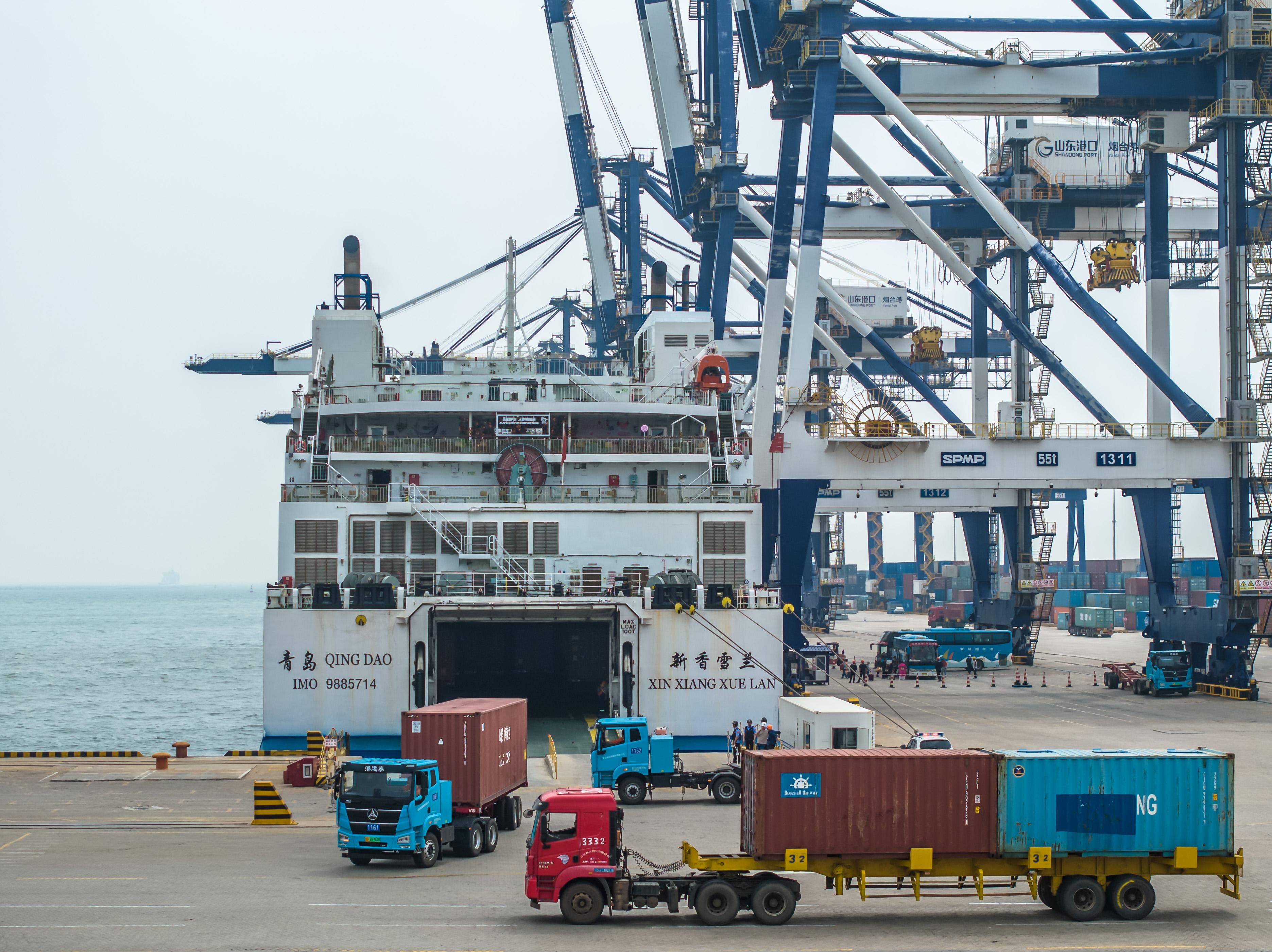 今年5月,全国首趟“一单制”跨境铁海联运班列满载商品车和汽车零配件,自烟台港入境后,换乘铁路运输发往新疆喀什口岸,最终运往吉尔吉斯斯坦。全程只需一张货运单据,即可实现跨境货物国际海运与国内铁路的无缝衔接,较过去运输时间压缩30%。