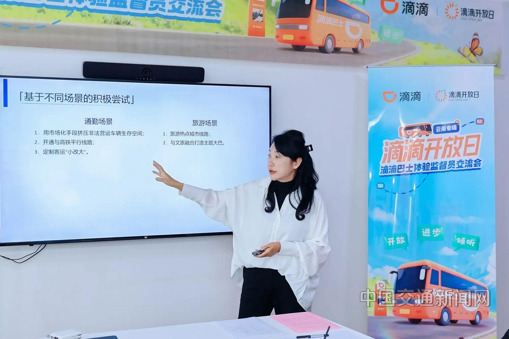 9月24日,滴滴开放日—滴滴巴士体验监督员交流会在云南昆明举行。云南交运代表、滴滴巴士区域负责人和体验监督员等一起,通过实地乘车、座谈交流的形式,深度交流滴滴站点巴士在云南发展情况,共同探讨传统道路客运行业数字化转型路径。