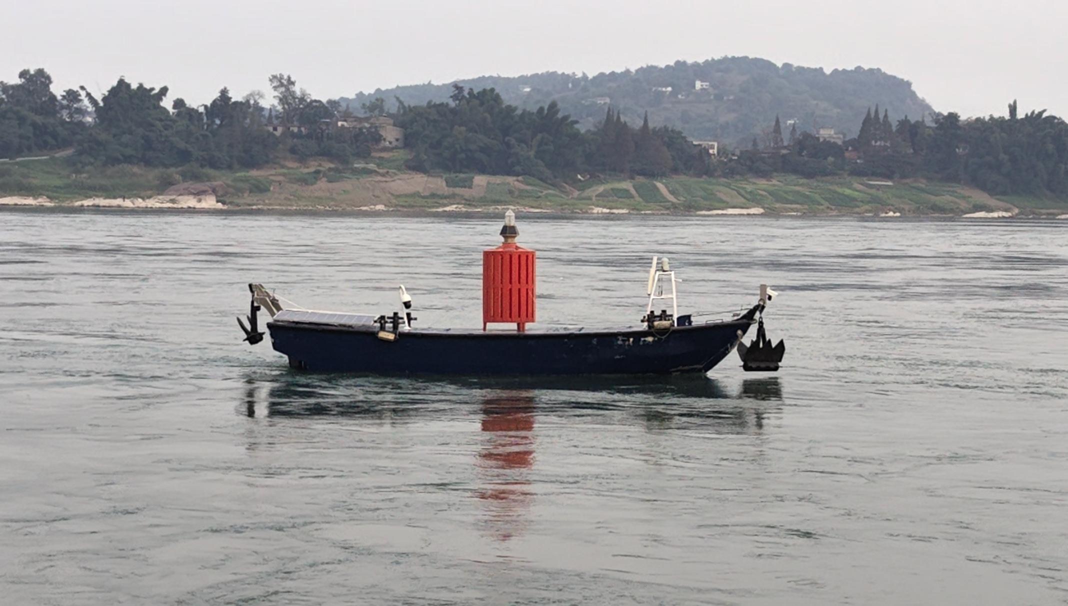 记者在长江泸州段纳溪水域看到,一艘船型航标缓缓航行,在固定水位自主抛锚“站岗”,整个“上岗”过程高效、精准。