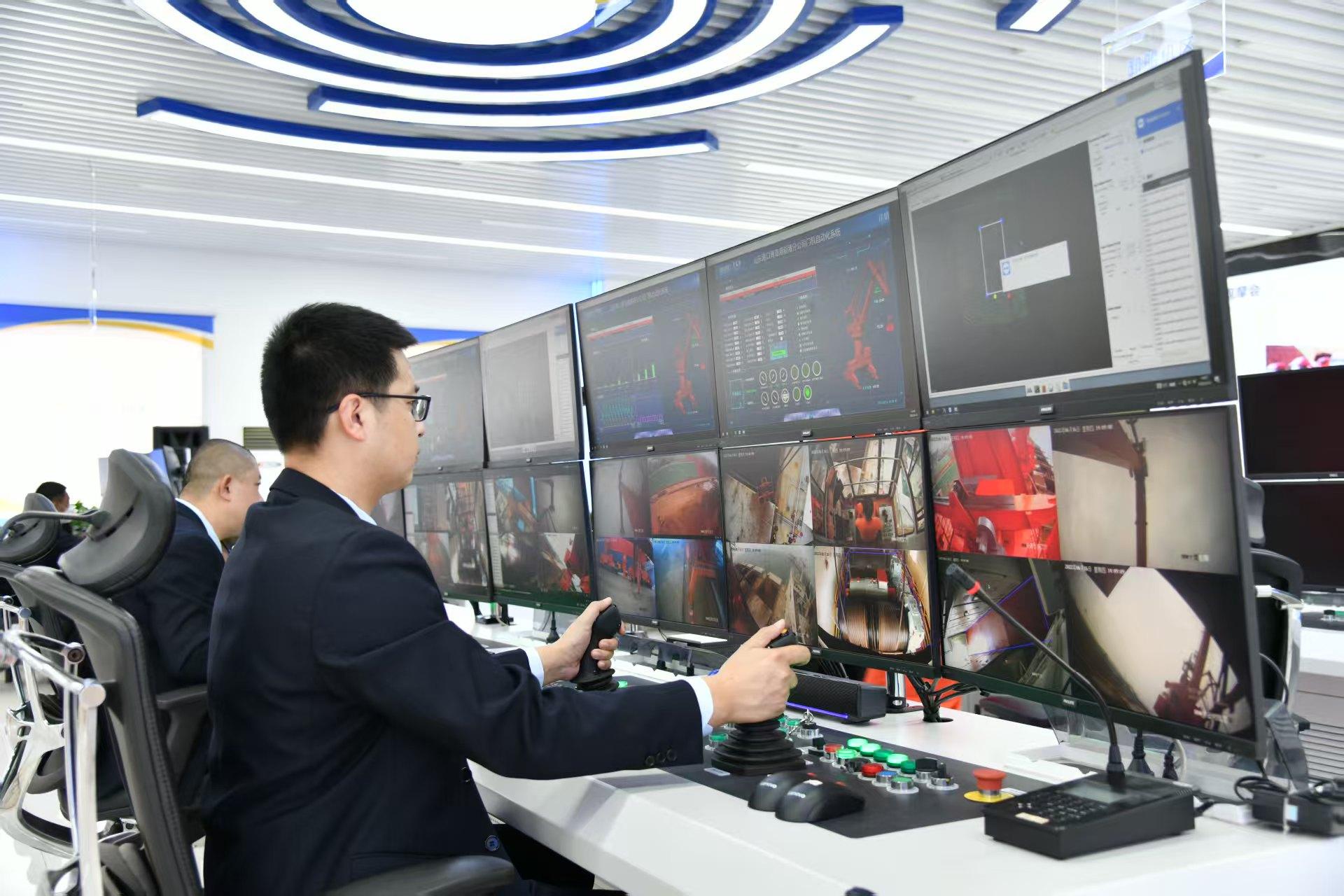“作业!”清晨的青岛港干散货码头86泊位,司机刘军浩正远程操作2台门机操纵杆,屏幕上吊臂实时同步,几百米外的“金色天空”轮上,12.2万吨铁矿石被精准装卸,首次实现门机“一控二”全船自动化作业。这个曾经需要在门机操控室前倾45度作业的老司机,因为码头自动化改造,一人就能远程管控2台门机:“科技把我们从‘苦力活’变成了‘技术活’,也为干散货业务发展注入了崭新活力。”