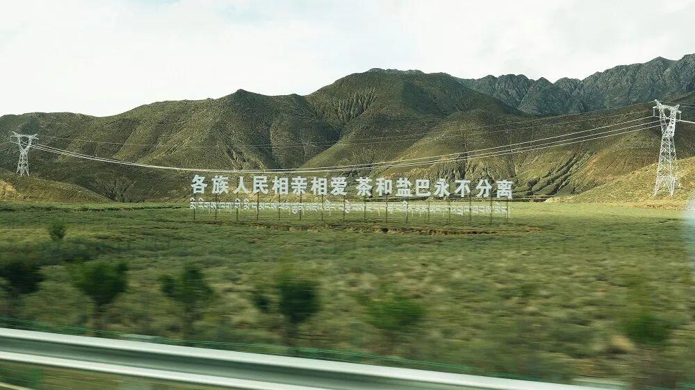 夕阳西下,318国道旁,“看着北斗星走不迷路,跟着共产党走会幸福”的标语道出了定日人民的坚定信心。