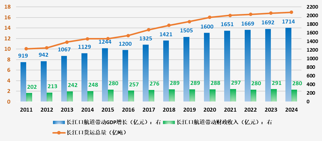 据悉,2024年,是长江口深水航道正式发挥效益的第14年,也是长江口南槽6米航道建成通航的第4年。14年间,长江口航道始终保持安全畅通,通过长江口航道的货运总量达194.27亿吨,共计产生航运、港口直接经济效益1932亿元,拉动GDP增长达19080亿元,带动财政收入增加3732亿元。2024年当年通过货运总量16.99亿吨,航运、港口直接经济效益222.29亿元,拉动GDP增长1714.09亿元,较2011年,直接经济效益实现了150.35%的增长,年均增速达7.31%。同时,长江口航道经济效益费用比,从2011年的5.55倍攀升至2024年的11.20倍。这一显著提升,深刻印证了长江口航道“小投入、大产出”的特色,凸显了其独特的经济价值、发展潜力和战略地位。
