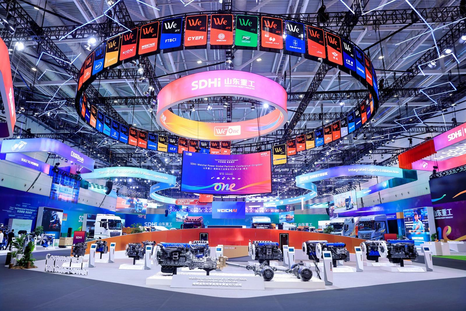 在大会“主秀场”,潍柴集团携动力系统、商用车等六大业务板块新产品亮相。现场共展出近60款动力系统明星产品,构建起排量覆盖2至579升、功率18至10000千瓦,全系列全领域产品矩阵。其中,高热效率发动机动力总成等先进动力系统解决方案,成为海外用户关注的焦点。