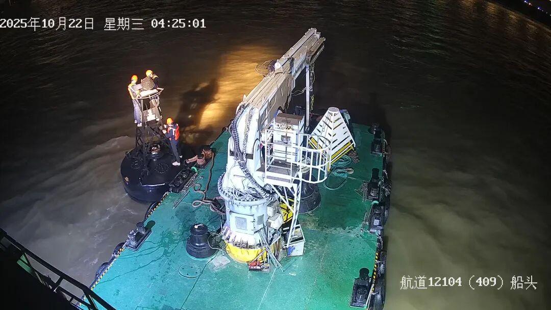 当大风天气过境,挑战接踵而至,近日,数字航道系统接连发出警报。凌晨3点,大胜关桥区一座关键航标灯光熄灭。虽值深夜且江面风急浪高,船舶班组闻令即动,迅速出航。抵达现场后,维护人员发现航标灯破损。刺骨的寒风中,航标员们沉着应对,迅速恢复失常航标。