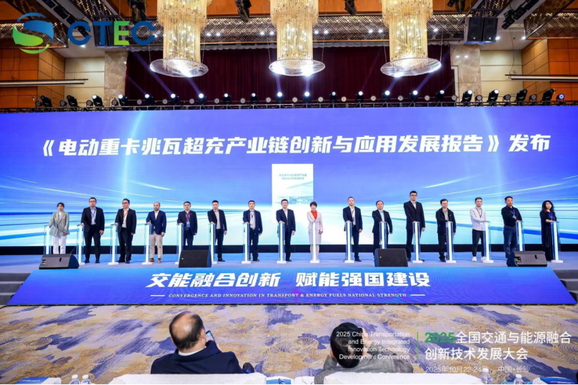 大会现场正式发布了《2025交通运输与能源融合发展报告》和《电动重卡兆瓦超充产业链与应用发展报告》。前者由中国交通运输协会、交通运输部科学研究院等权威机构联合编制,系统梳理了交能融合的政策、技术、产业与实践全景,被誉为行业发展的“风向标”和“行动指南”。后者则聚焦电动重卡补能效率瓶颈,由交通运输部公路科学研究院牵头,联合华为数字能源等产业链代表单位共同编制,深入剖析了兆瓦超充技术的产业链生态与应用前景,为产业创新提供了重要参考。