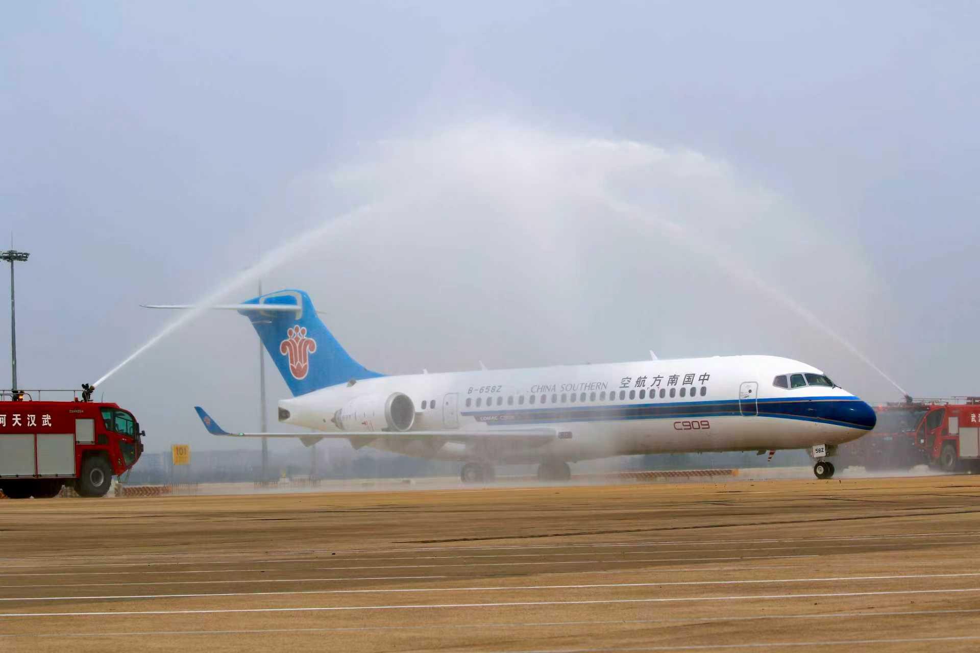 C909的加入丰富了南航湖北分公司机型布局,进驻后,已成功执飞武汉出发至广州、西安、重庆、海口、上海、成都天府、天津等在内的11个重要航点,平均客座率达88%。在今年7月,新开武汉至延安、盐城等航线,将中部交通枢纽与红色革命圣地及黄海之滨相连,展现支线客机灵活高效航线网络适配性。2025年冬春航季,南航湖北分公司将执管5架C909,为出行旅客提供更多机型选择。