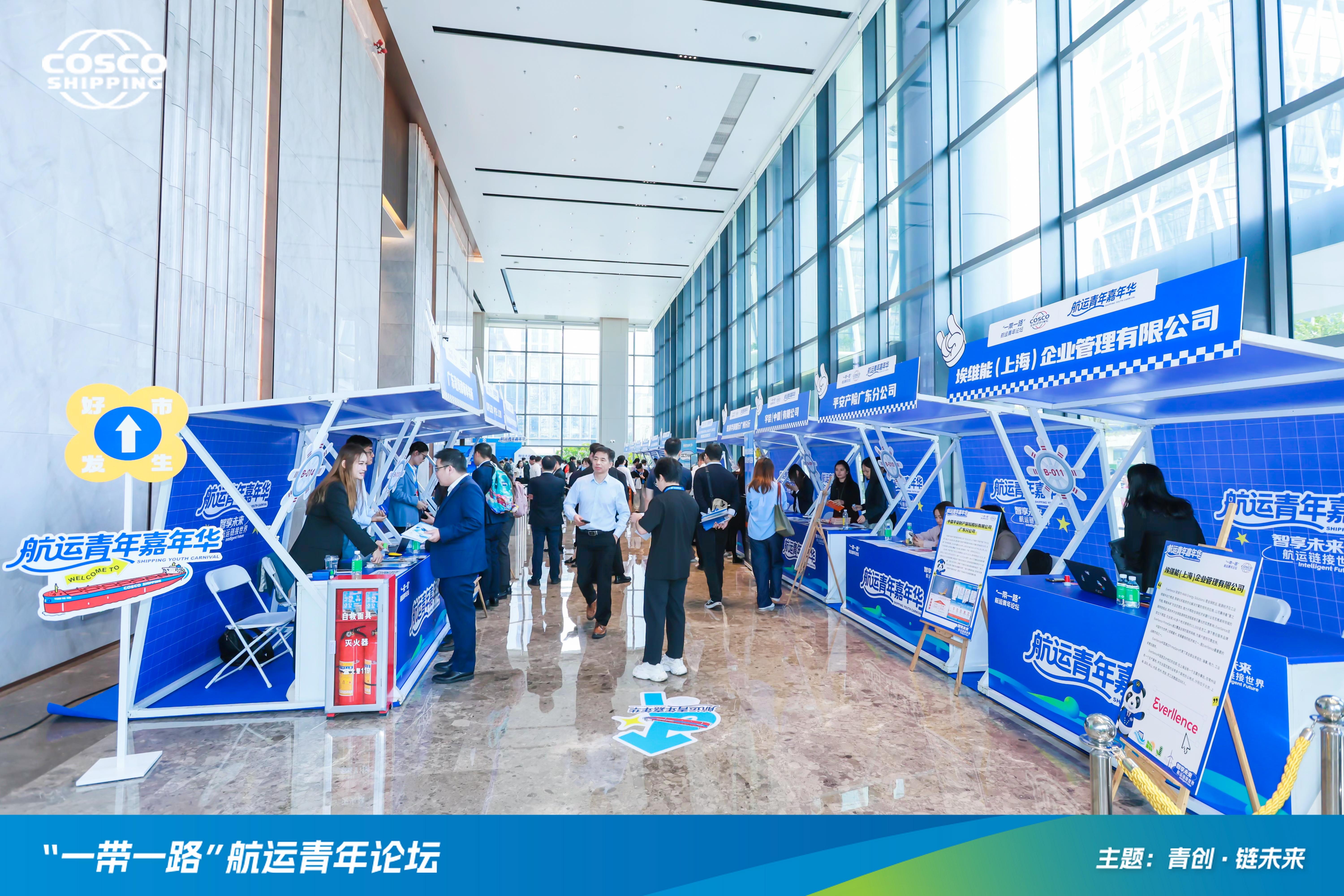 作为论坛特色配套项目,现场同步举办了以“智享未来·航运链接世界”为主题的嘉年华。活动设置供应链合作、AI互动、饮食生活服务三大展区,23家航运产业链上下游的合作伙伴与论坛代表深度互动交流,吸引周边办公区近千名青年踊跃参与,现场氛围热烈高涨。活动不仅传递了航运特色与航海文化,更成为航运企业推动共创共享共促发展的生动实践。