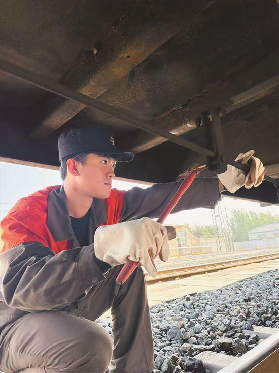 今年23岁的尹梦晗是位“00后”。“别看小尹年纪小,但很可靠。”宋杰说,今年年初,尹梦晗在检查中欧班列时,及时发现制动主管60毫米裂纹,迅速上报扣修处理,有效避免了一起可能发生的事故。