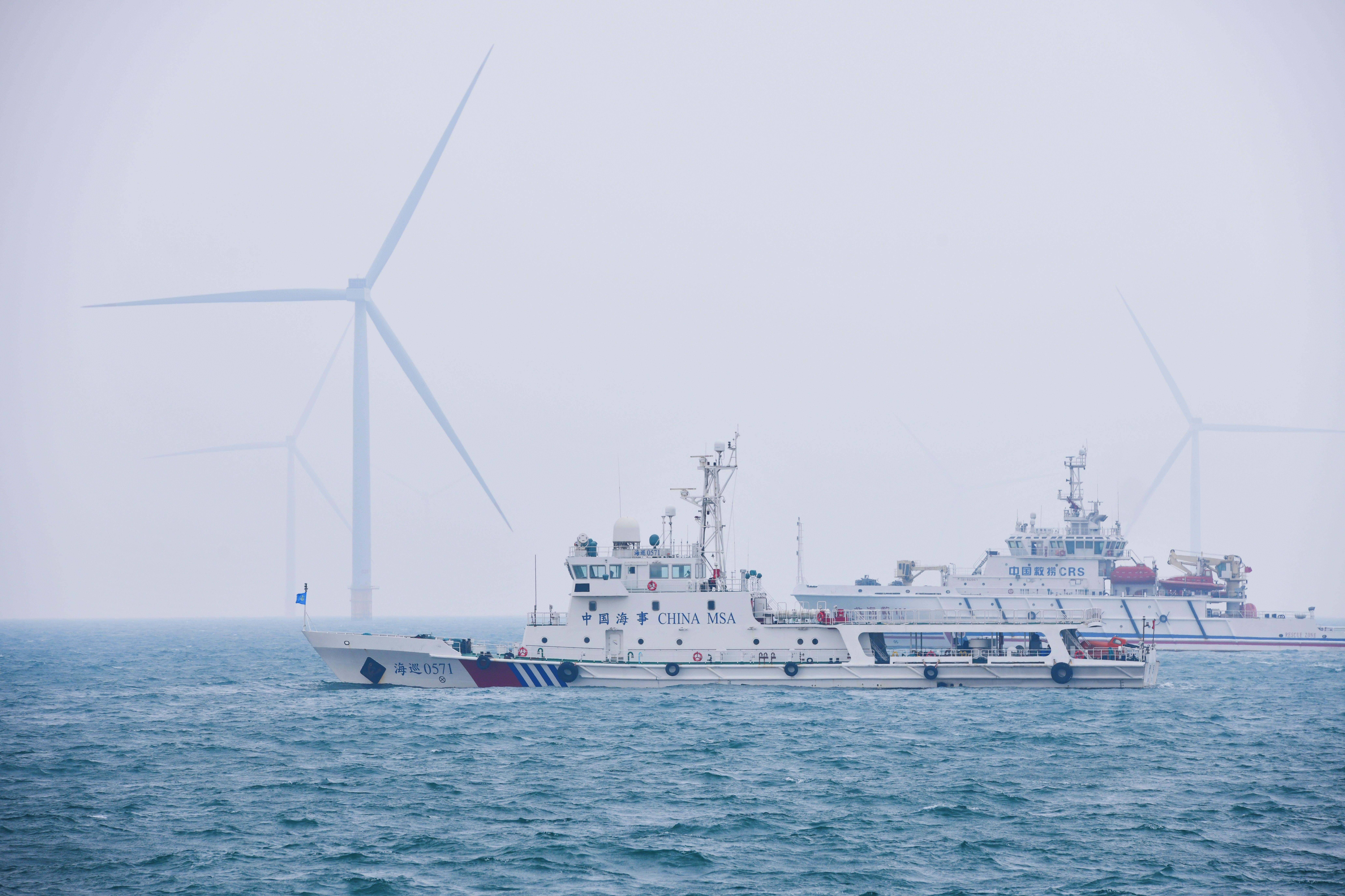 10月28日,2025年山东(青岛)海上风电综合应急演习在山东半岛南部国家能源集团国华投资山东分公司建设的望海风电场成功举行。本次演习科目全、参演力量多、配合难度大,是山东海上搜救机构及海事部门举办的离岸最远的一次综合演练,也是中国北部海域规模最大、离岸最远、难度最大的海上综合应急演习。演习共出动包括“海巡11”轮、“海巡0571”轮、“北海救111”轮等在内的各类船艇14艘,直升机及无人机20架,参演人员120余人,是对应急通信指挥、船岸联动和海上救助应急力量协作水平的一次贴近实战的重大检验。