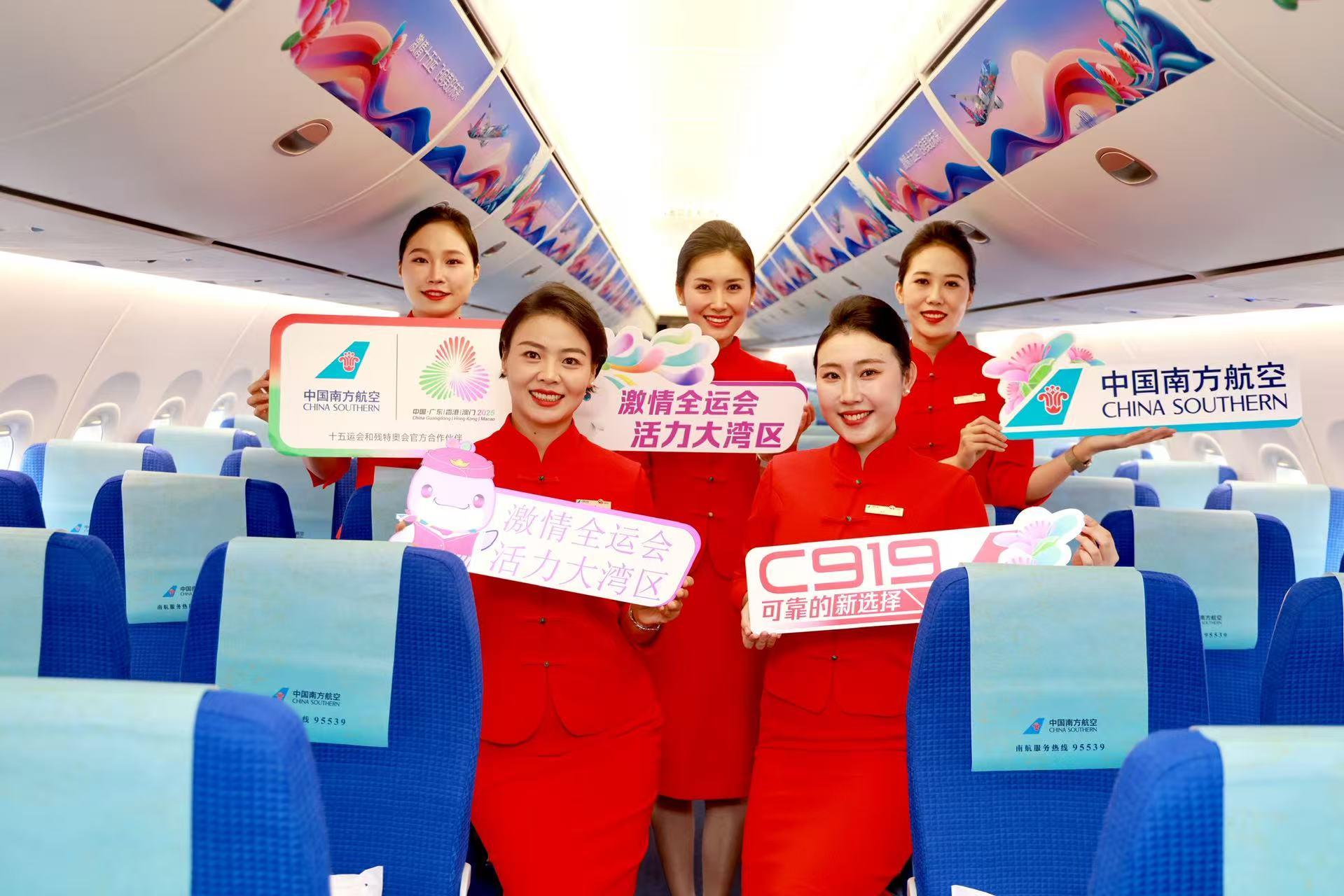 11月4日12点27分,国内首架C919十五运会彩绘飞机“大美湾区”号搭载157名旅客从广州白云国际机场顺利起飞,前往上海虹桥国际机场,该飞机是中国南方航空(简称“南航”)第7架C919国产大飞机,执飞广州-上海虹桥往返航线。此次“大美湾区”号彩绘机的首航,既是国产大飞机商业化运营的重要成果,也是中国民航携手国家重大体育盛会的创新实践。