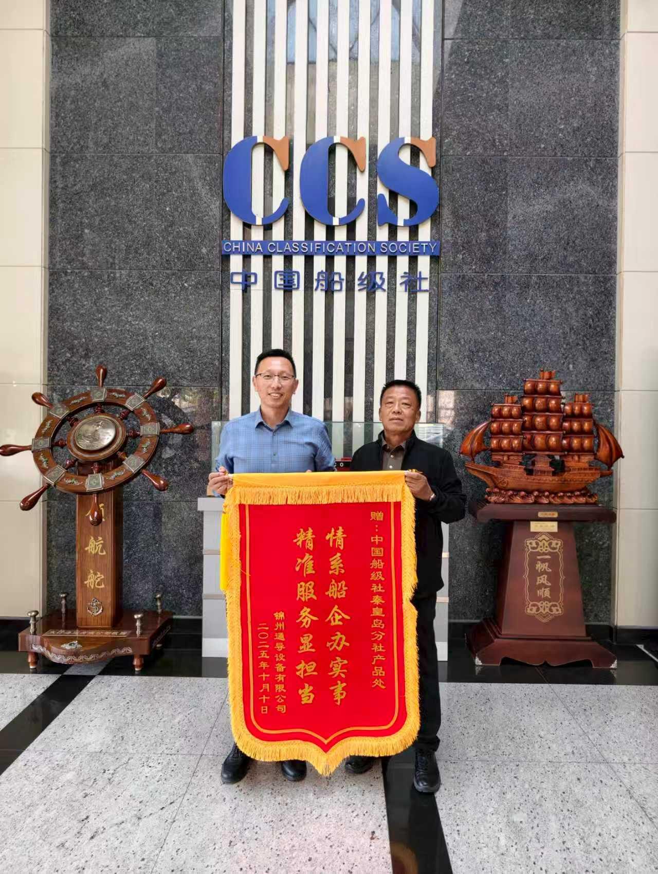 近日,锦州通导设备有限公司专程到访中国船级社(CCS)秦皇岛分社,将一面印有“精准服务显担当,情系船企办实事”的锦旗及感谢信赠予分社,对分社在通导设备检验认证全流程中的专业支持与高效优质服务表达诚挚谢意。