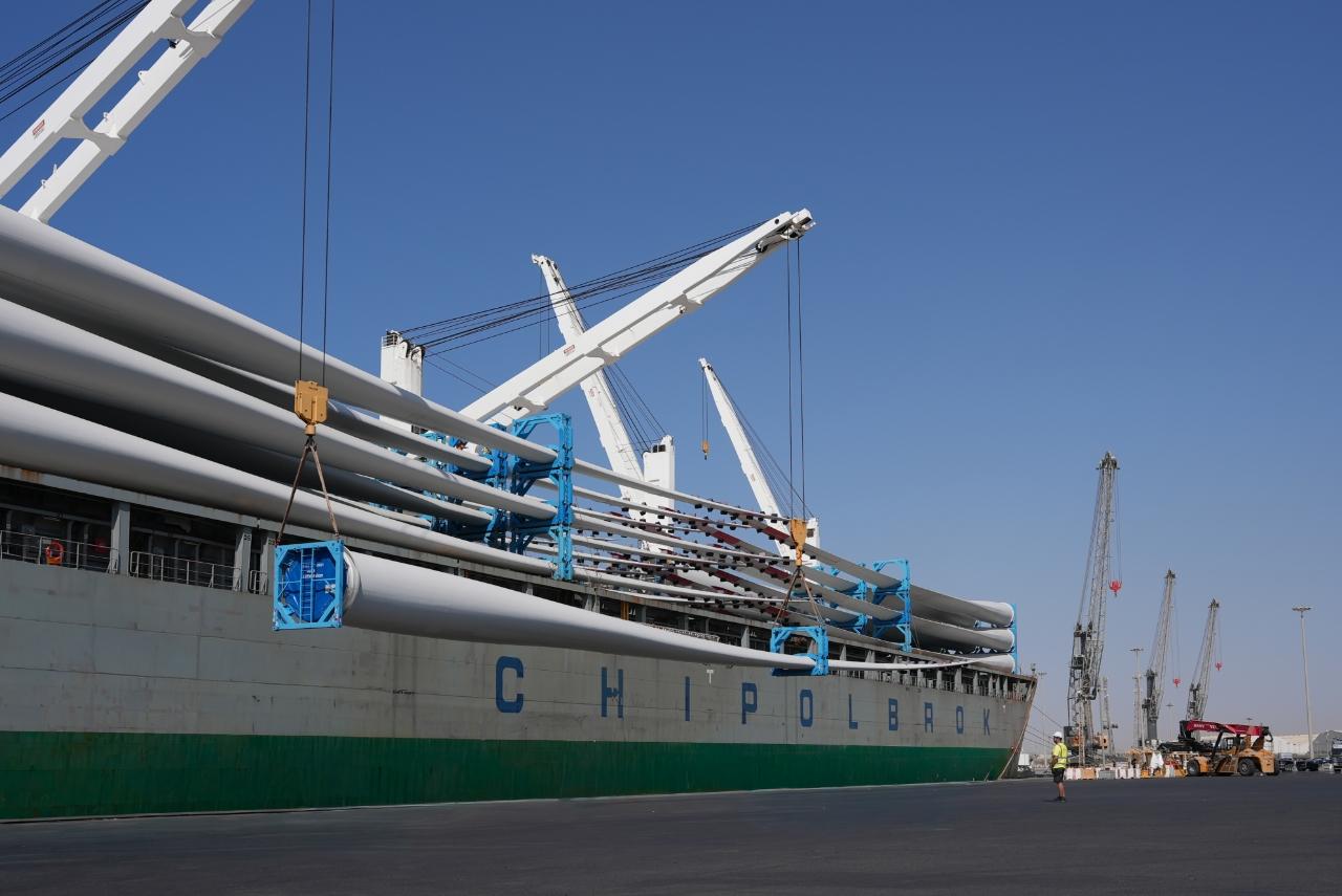 2023年9月3日,中波轮船股份公司“克拉舍夫斯基”轮从中国太仓码头起程运输沙特新未来城绿色氢工厂风电项目第1船设备,开启中波公司荣誉承运该项目全部251套风电、141万方机组设备的服务接力。两年多时间里,共41航次、约17艘中波公司船舶参与项目运输。