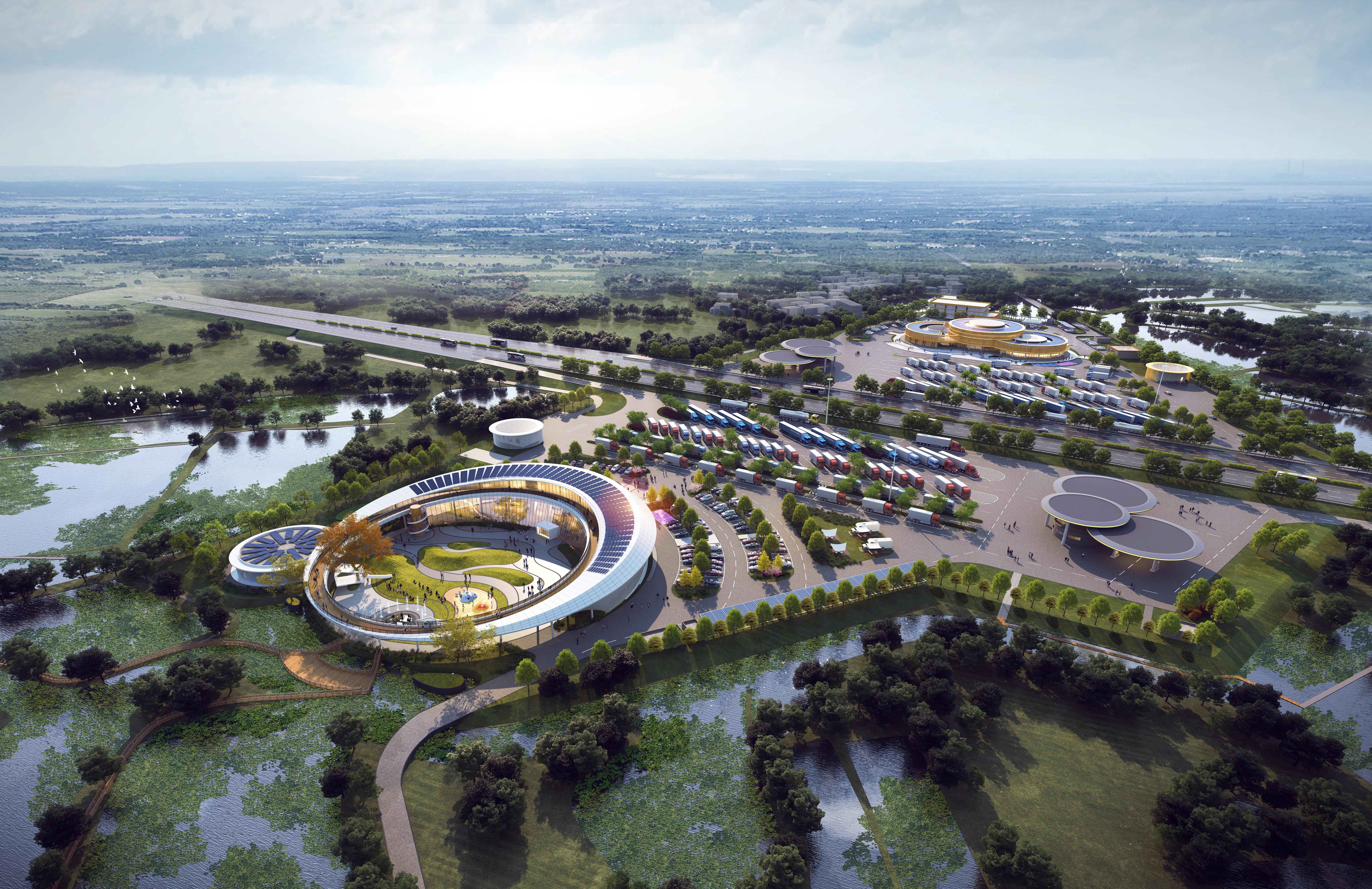 而项目最动人的创新,当属新建的武昌鱼服务区。为让服务区更接地气,项目将原规划的蒲团服务区更名为武昌鱼服务区,以鄂州荷文化为灵感设计莲叶造型建筑,内部设武昌鱼主题餐厅,供应梁子湖鲜鱼;开设荆楚江湖市集,售卖黄石港饼、鄂州鱼干等特产,让“过路站”变成“文化打卡地”。