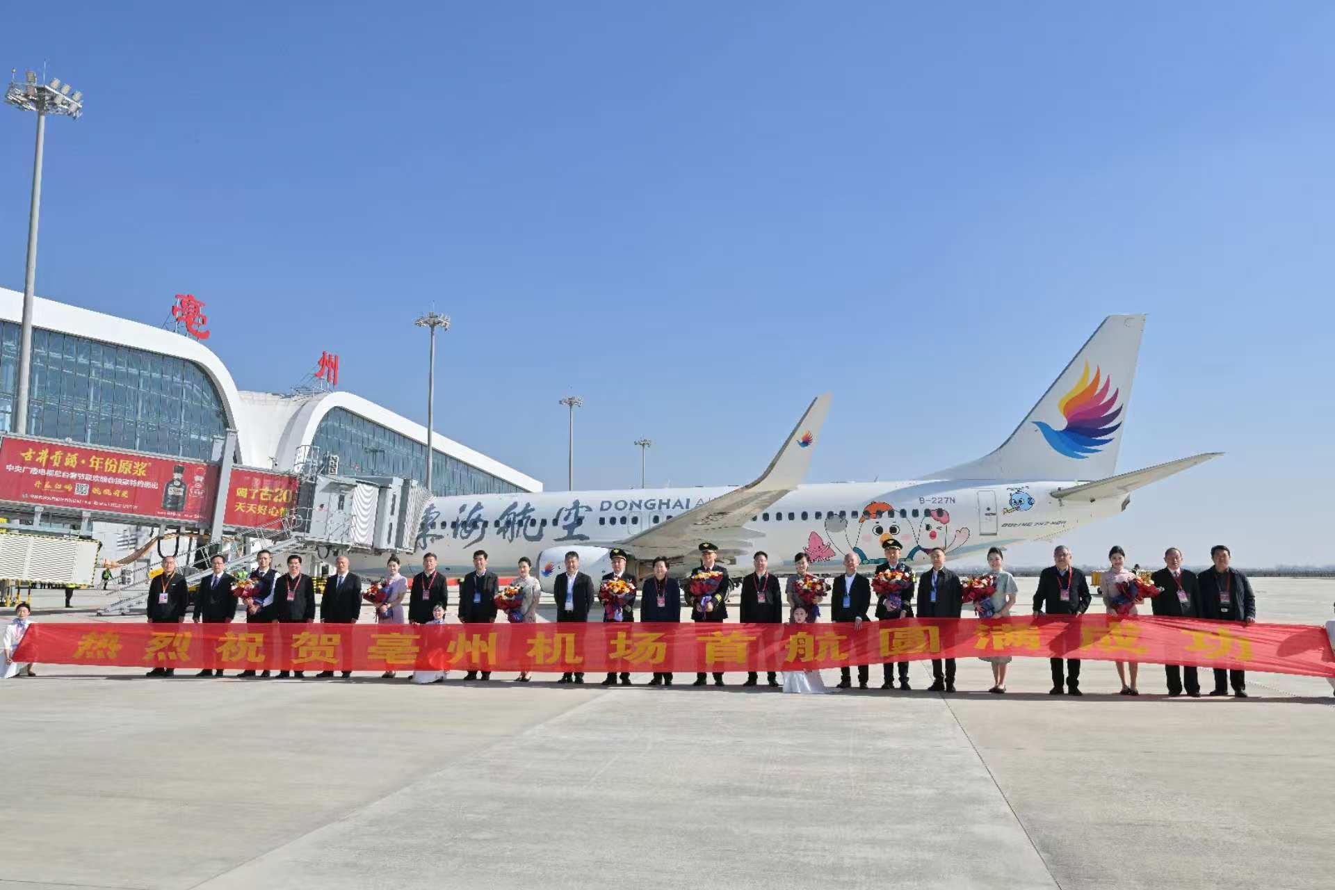 11月12日10时28分,由深圳飞往亳州的东海航空(航班号DZ6223)B737-800型客机,搭载着174名旅客,平稳降落在安徽省亳州机场跑道。11时52分,这架东海航空客机搭载167名旅客和1.7吨货物飞往深圳,标志着安徽省亳州机场正式开航。
