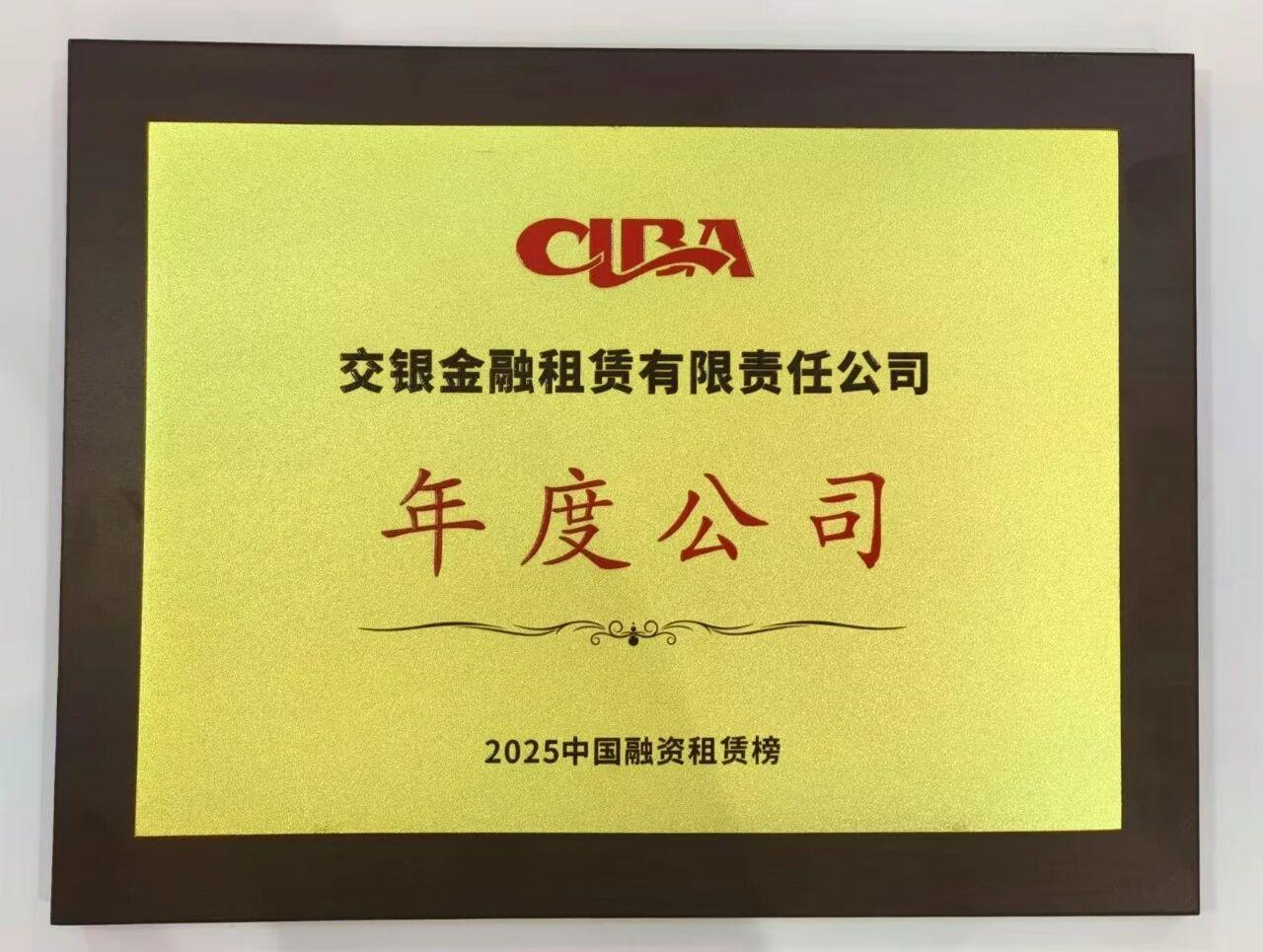 近日,“2025中国融资租赁榜”评选结果正式揭晓。交银金融租赁有限责任公司(简称交银金租)凭借专业化业务模式、稳健的经营管理及创新实践引领,荣获“年度公司”奖项,充分体现了行业对交银金租综合实力与标杆价值的认可。