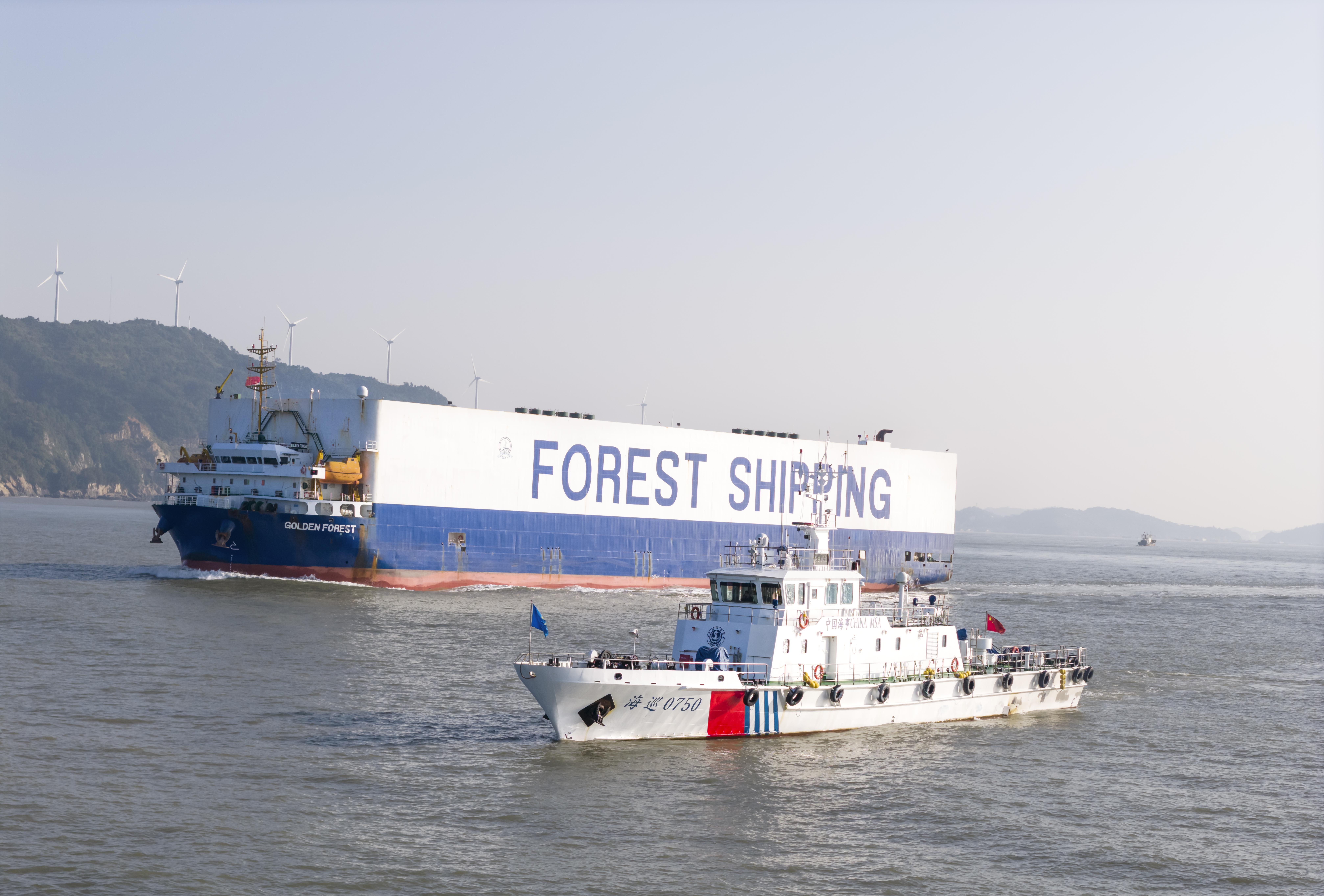 此次运输,台州海事部门靠前指导,优化船舶出入境查验流程,为“金色森林”轮提供了高效便捷的通关保障。同时,针对近期台风和冷空气影响,加强与气象、渔政等部门联动,提前进行航道清障,通过乐清湾交通组织一体化平台编制港口进出计划。随着“金色森林”驶入大麦屿港区,海事部门派出海巡艇和无人机现场护航,作业期间值班室通过CCTV远程关注装载情况,全力确保船舶靠离泊和作业安全。“船舶入境手续办理非常顺畅,台州海事部门提前给我们提供了专业的靠泊指导和气象预警服务,”船代公司负责人表示,“这种高效服务让我们对在台州玉环开展新业务充满信心!”