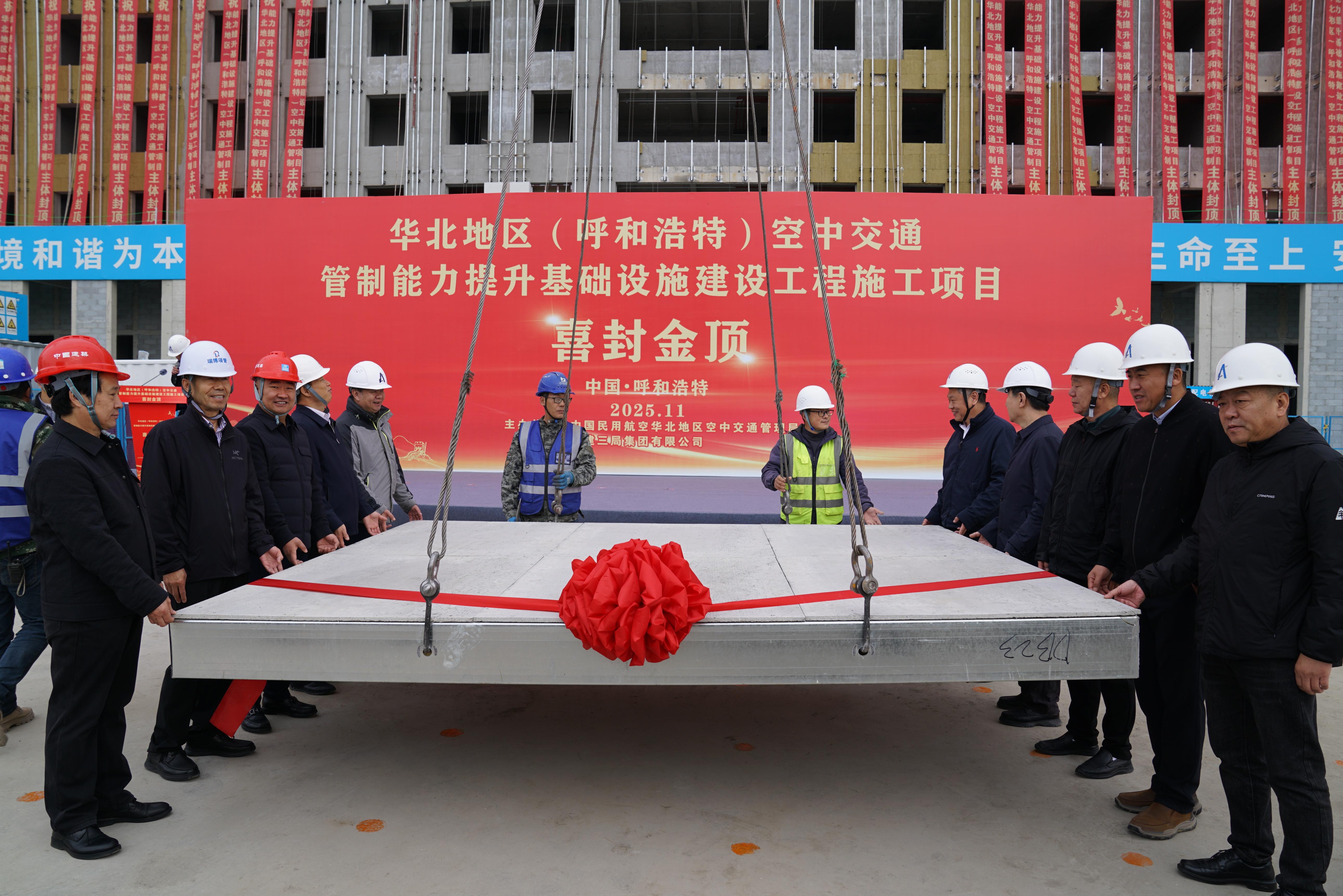 近日,由华北空管局承建的华北地区(呼和浩特)管制能力提升基础设施建设工程举行封顶仪式。华北空管局副局长董守杰,华北空管局空管工程建设指挥部、华北空管局内蒙古空管分局相关领导及参建单位代表参加仪式,随着管制大厅最后一块楼板的顺利吊装,项目主体结构如期封顶,未来将为华北区域航空安全运行注入强劲动力。