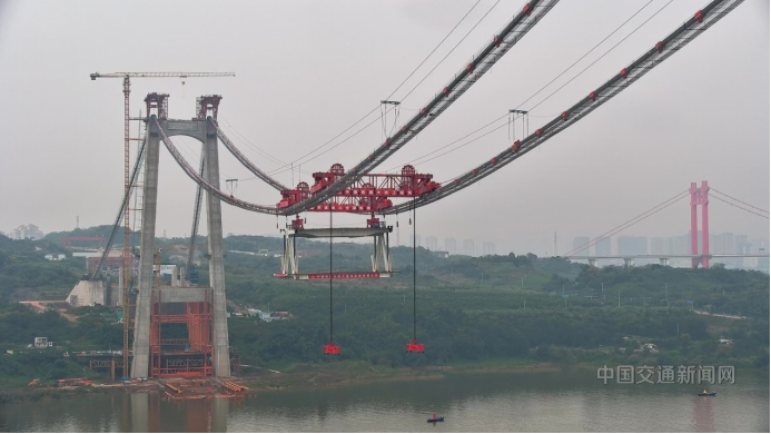 11月16日,由中铁大桥勘测设计院设计的重庆渝长高速复线连接道控制性节点工程 ——黄桷沱长江大桥主桥首节段钢桁梁顺利完成吊装,标志着这座国内最大跨径公轨两用钢桁梁悬索桥正式拉开上部钢结构施工序幕。