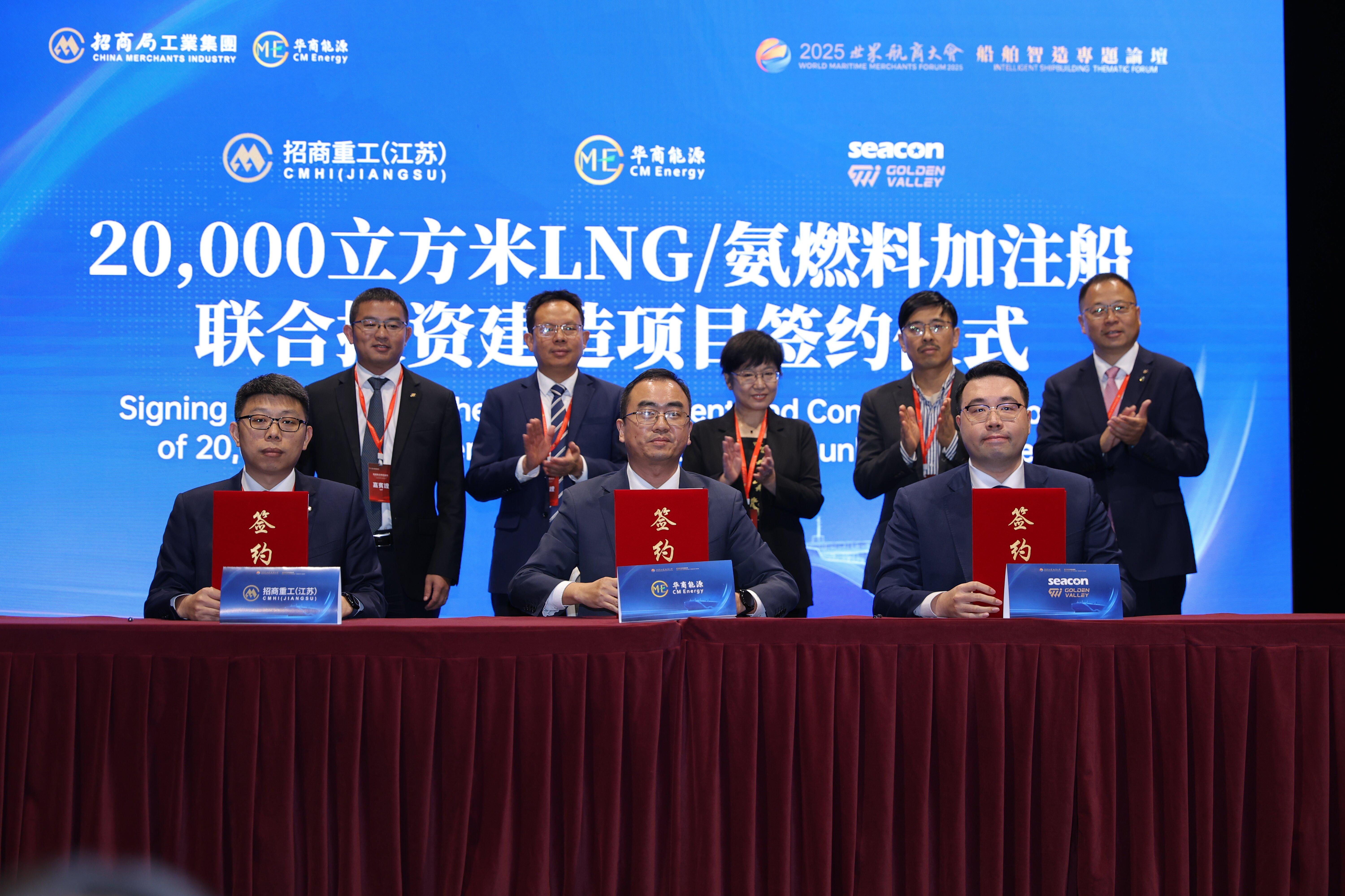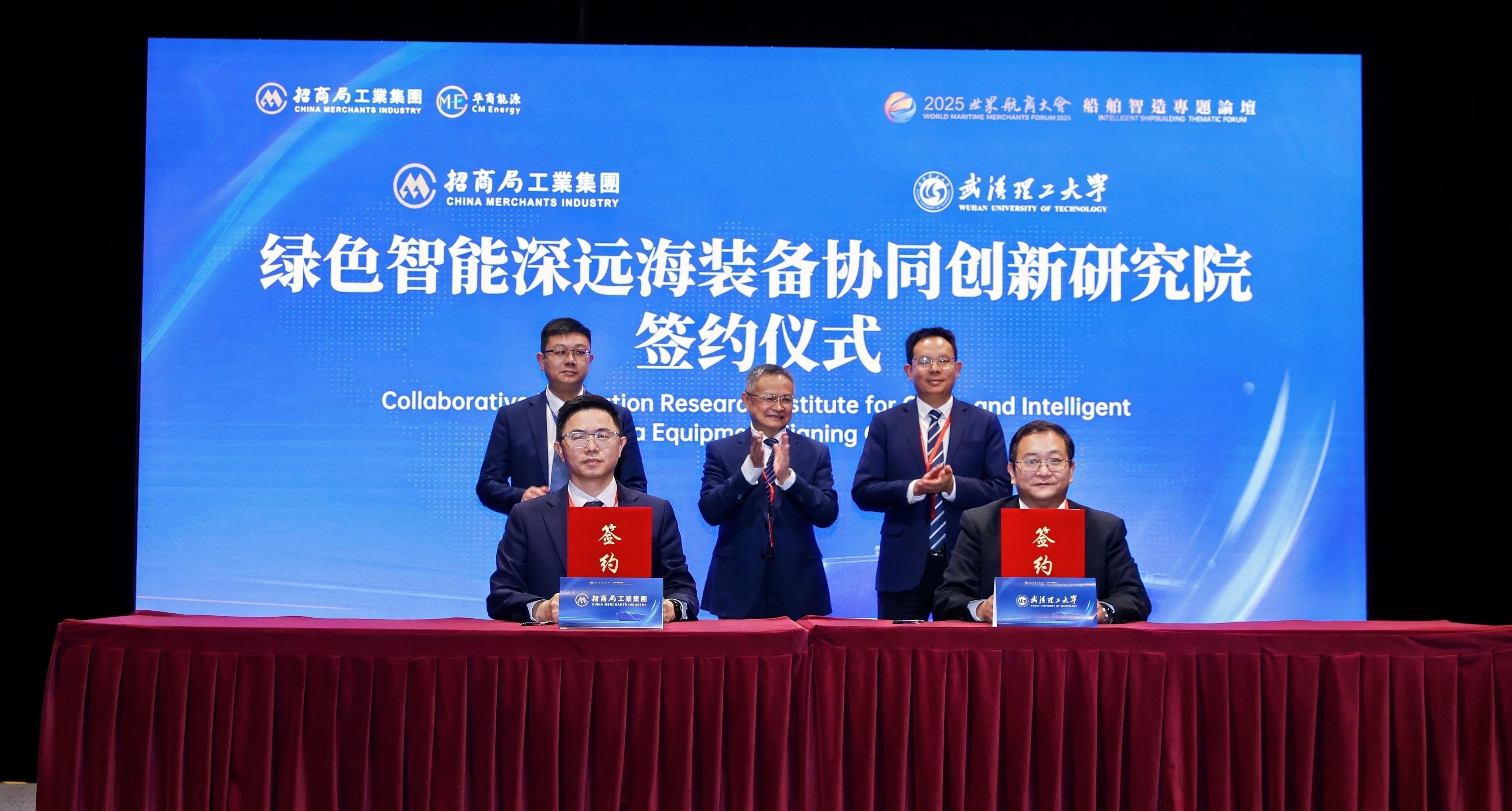 当日,武汉理工大学与招商局工业集团签署联合共建绿色智能深远海装备协同创新研究院协议。华商能源、招商重工(江苏)公司、洲际船务集团签署“20000立方米LNG/氨燃料加注船联合投资建造项目”协议。