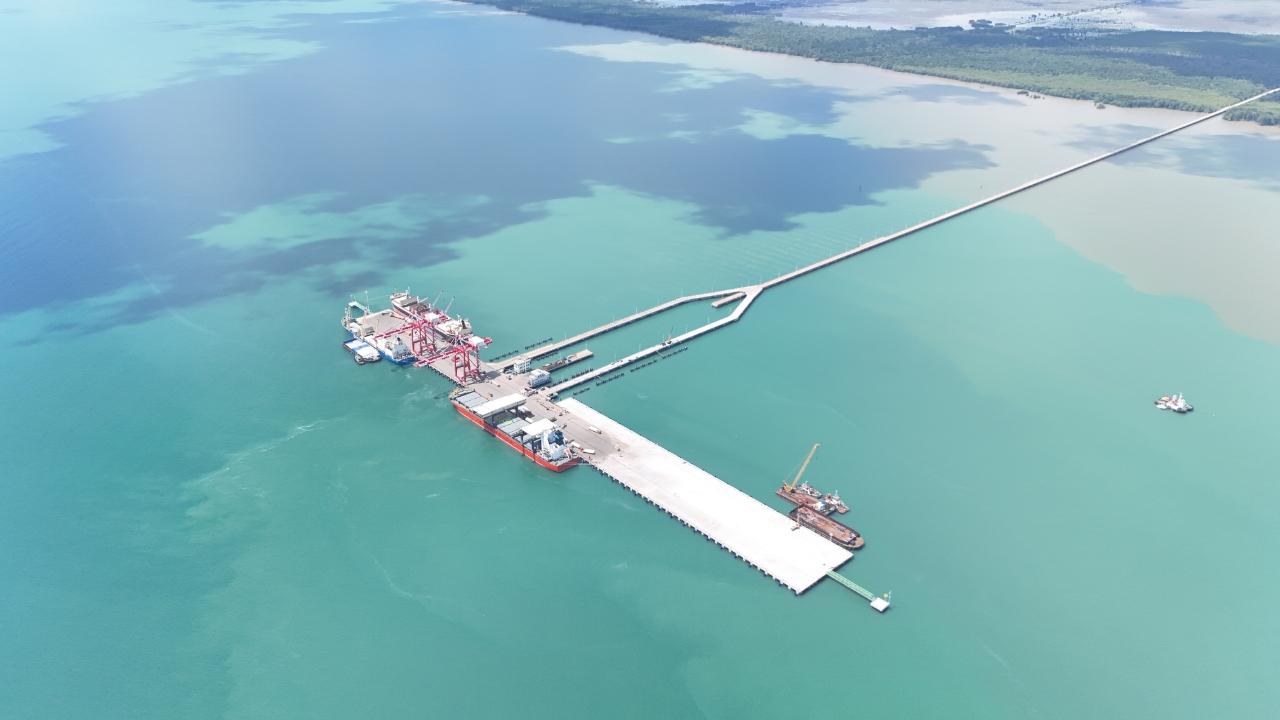 该项目位于印尼苏门答腊岛,是金光集团纸浆产业物流链的关键一环。码头采用高桩梁板式结构,本次扩建项目的主要建设内容包括新建长250米、宽70米的新码头,扩建长128米、宽20米的既有码头,以及对已达到使用年限的一期钢便桥进行拆除,并按永久引桥标准进行重建。