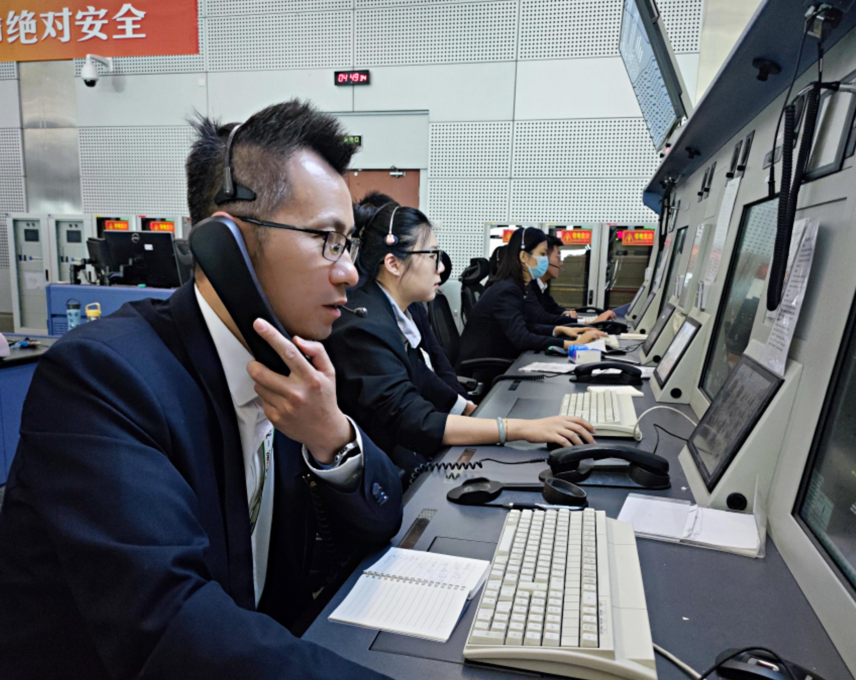 此时,拥有近20年管制经验的带班主任任天一稍作思考后,率先拿起协调电话。他熟练拨通周边扇区的联络线路,凭借对空域结构的熟稔和多年应急处置经验,快速敲定航班移交节点、调整空域使用优先级,将GCR7884的进港航线与其他飞越航班提前做好衔接协调。“17号扇区注意,GCR7884预计10分钟后进入你们责任区,高度保持8400米”“请优先保障GCR7884进近,后续进港航班按顺序跟进”,沉稳的语气、精准的指令,为指挥管制员减轻了管制压力,让每一条指挥指令都更顺畅、更高效。