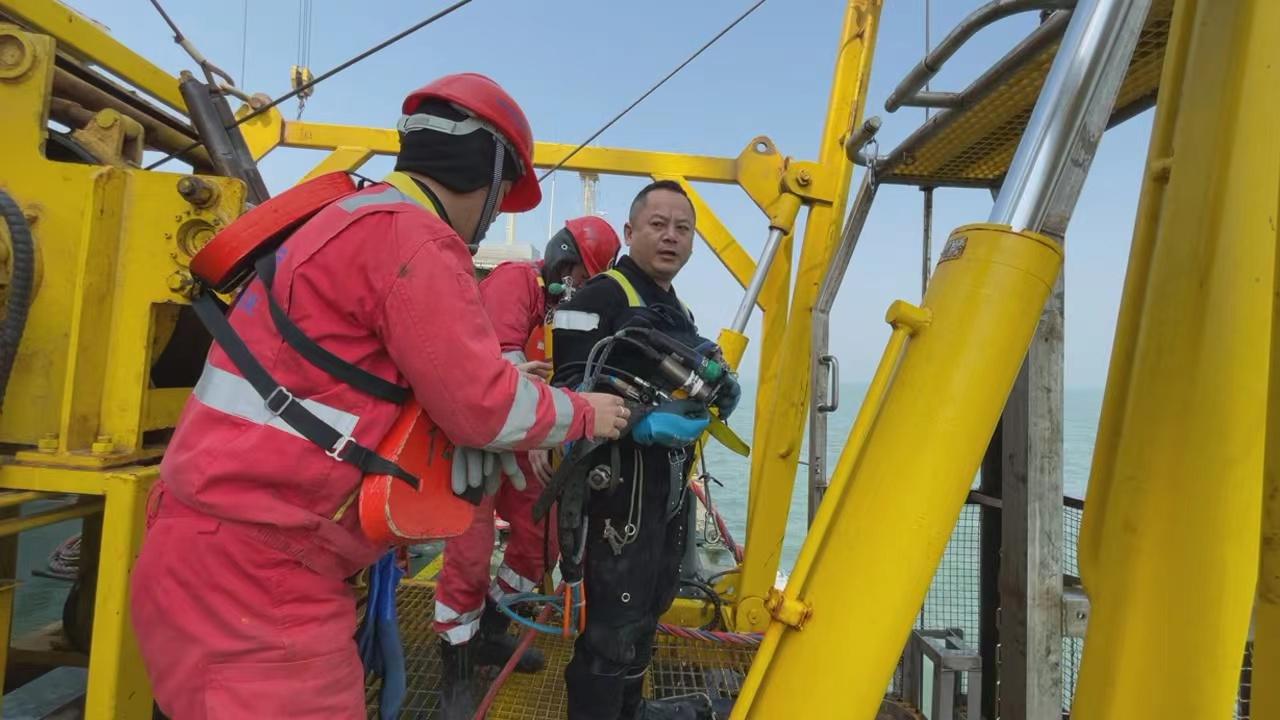 2021年接手深中通道潜水项目时,8万吨重的沉管对接成了最大难题:长180米的沉管,水下对接精度需控制在1毫米内,传统测量工具不仅耗时久,还容易受水流影响。那段时间,他虚心向工程技术部门请教,组织同事开展桌面推演,最终牵头研制出沉管对接水下测量三用测量尺,将测量精度精确到1毫米。这个看似简单的工具改良,让沉管对接时间大幅缩短,为粤港澳大湾区这一国家工程按下了“加速键”。