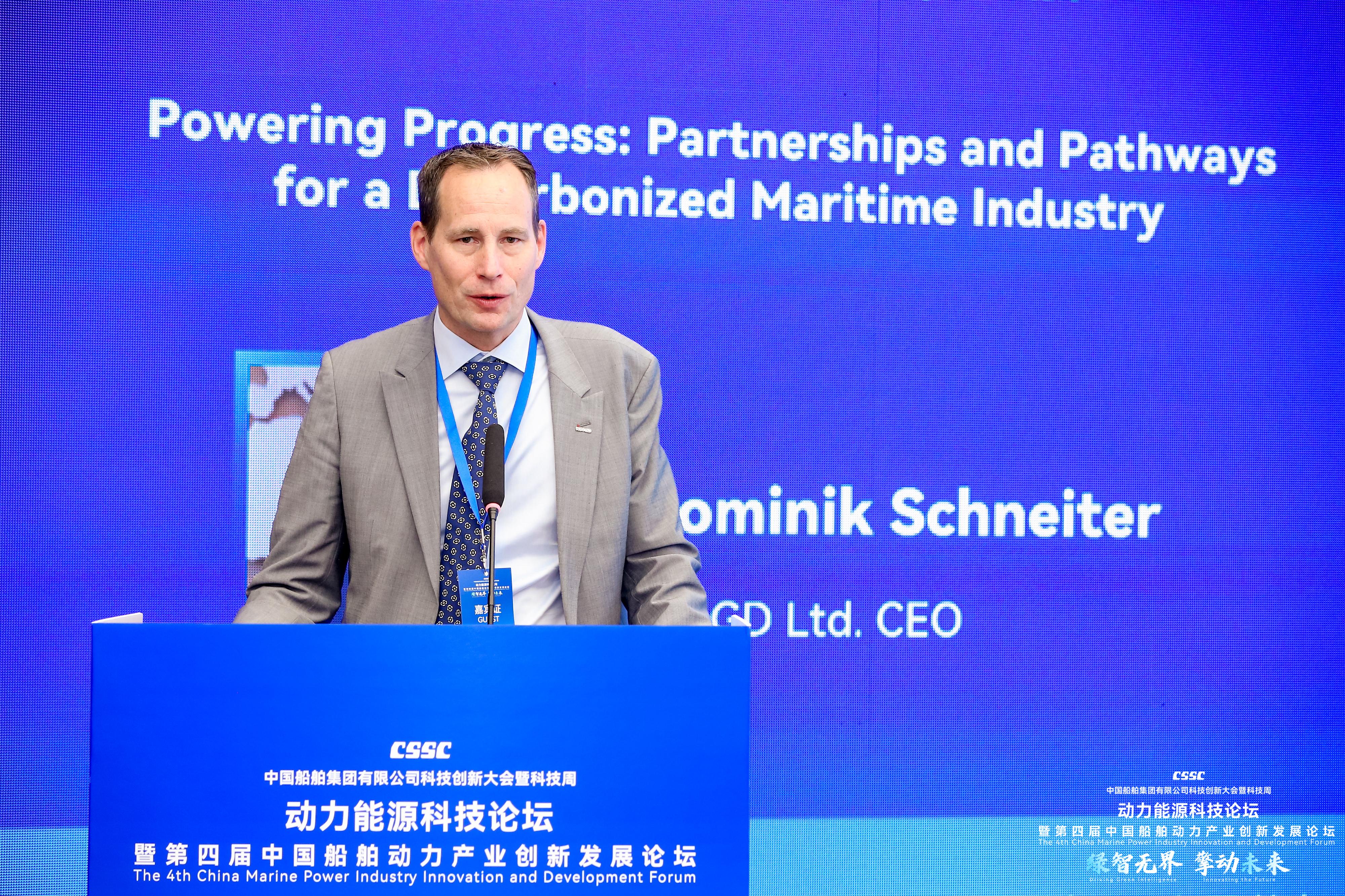 WinGD公司 CEO Dominik Schneiter 分享了国际海事产业脱碳合作的实践路径,强调航运业脱碳需通过多燃料战略、全生命周期解决方案与跨界协作实现,并介绍了 WinGD X-DF 发动机平台在氨、甲醇等替代燃料应用中的领先成果,以及与产业链伙伴协同推动技术落地的经验。