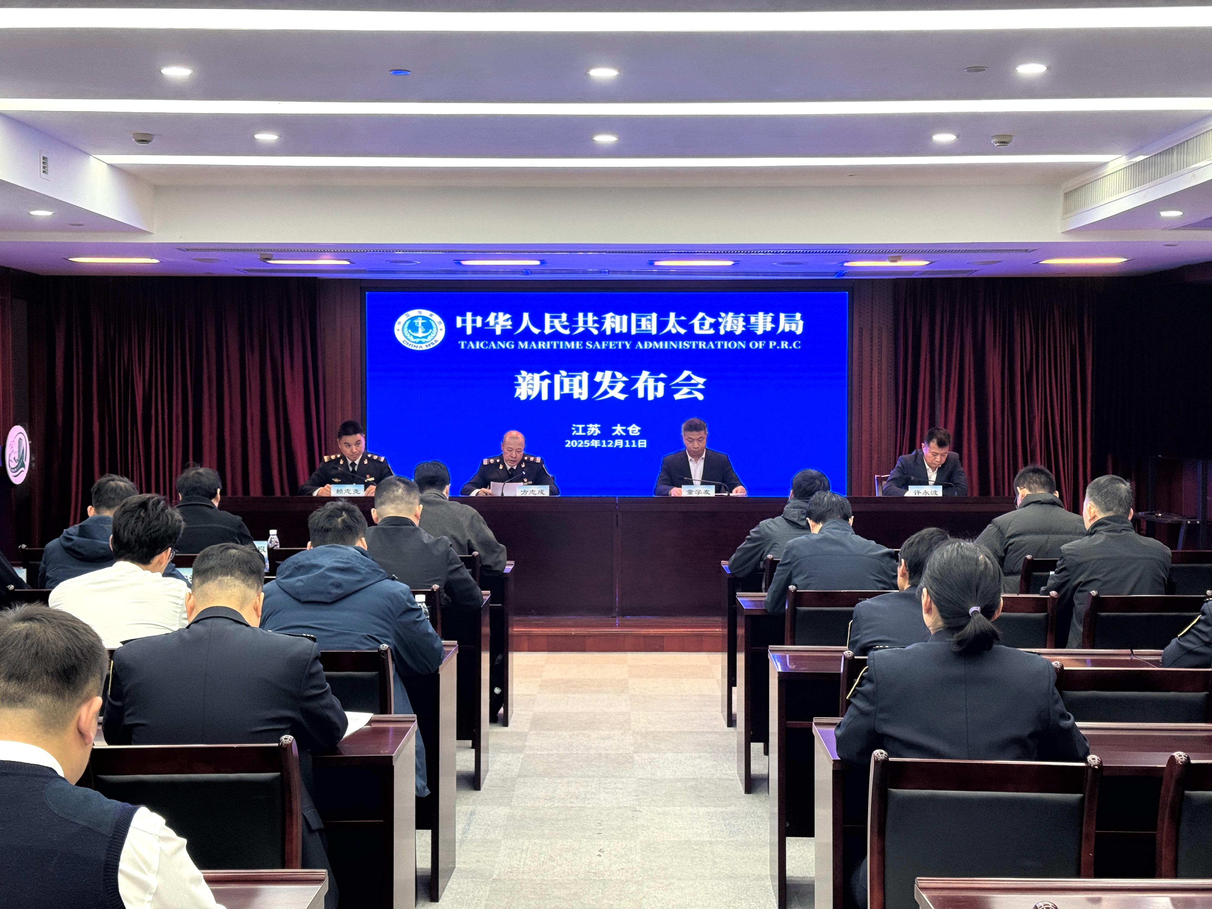 为强化进江海船安全风险防控意识,推动船公司及船舶落实安全主体责任,切实筑牢长江航运东大门水上安全防线,太仓海事局于2025年12月11日召开长江航运东大门进江海船安全风险防控新闻发布会。此次发布会通报了进江海船存在的安全风险、海事部门风险防控措施,以及对各责任方的具体建议,并向广大船公司及船舶发出风险防控倡议,着力引导行业主体深刻认识风险隐患排查治理的重要性,凝聚政企协同守护安全的共识。