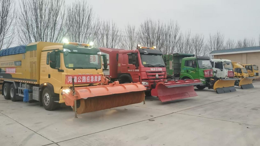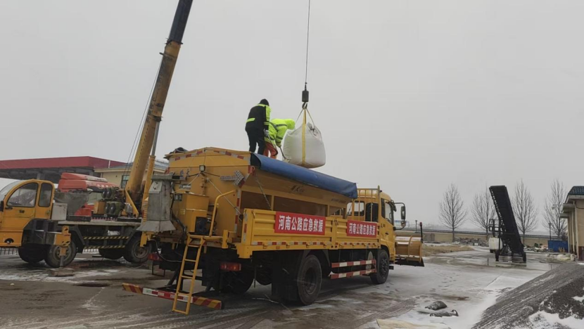 目前,河南省普通公路部门共设置应急物资储备站点205处,在重点路段预置队伍381支共6160人,投入机械设备1121台、融雪物资8000余吨、防滑料15860余立方米,全力保障公路安全畅通。