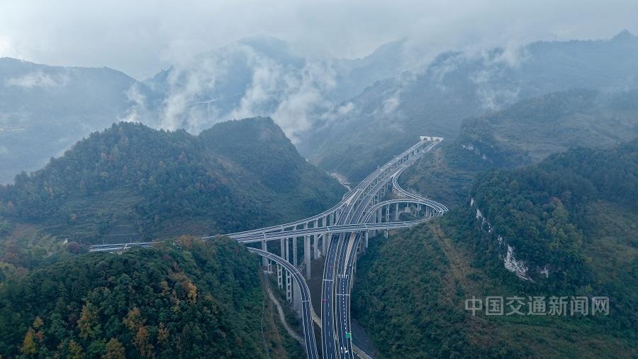 渝湘复线高速公路总里程280公里,途经巴南、南川、武隆、彭水、酉阳5个区县,平均桥隧比达80%,由重庆高速集团牵头联合31家央国企共同出资建设,是重庆高速公路建设史上投资规模最大、综合技术难度最高的项目之一。面对320米深谷、10余条地质断层等世界级难题,建设者创新采用“索道便桥+智能建造”模式,攻克高瓦斯隧道施工、岩溶地质处理等20余项关键技术。作为西部陆海新通道东线重要枢纽,该项目全线贯通后,将形成“通湘达鄂、联黔出海”的省际通道网络。