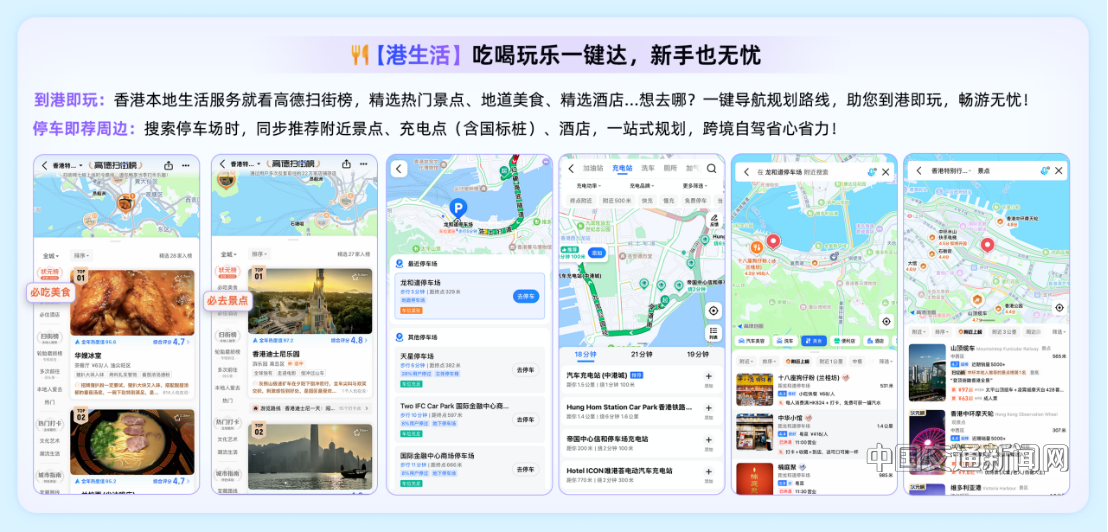 针对港珠澳大桥珠海公路口岸的复杂路况,高德还推出了精准车道引导功能,通过实时定位与车道级导航,为车主提供无需担心绕路或误入的解决方案,系统动态播报专用通道指引,大幅提升通关效率。该功能覆盖港珠澳大桥及香港主干道,精准指引复杂路况、靠右侧行驶及变道提醒,为新手带来如同内地高速的导航体验,轻松应对跨境驾驶差异。此外,智能周边探索功能可搜索停车场并推荐附近景点、充电点(含国标桩)及酒店,一站式规划跨境行程,让自驾更加省心省力。