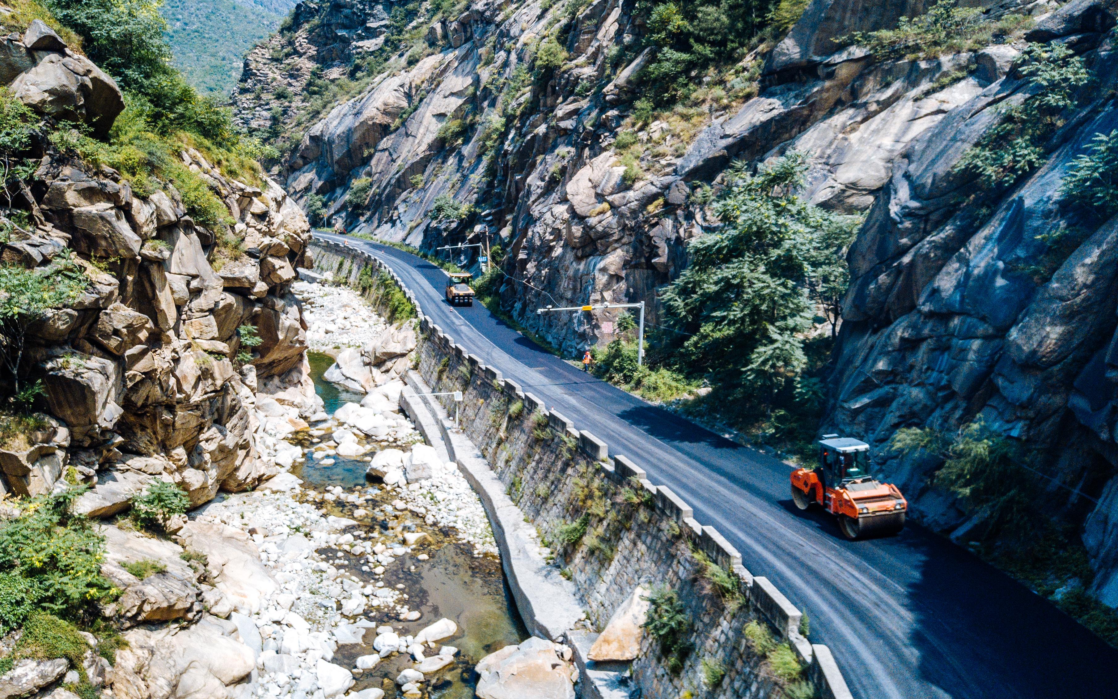 源源不断的钼矿顺着这条南北交通大动脉,流出秦岭大山,送往祖国需要的各个地方。但重载车辆多,势必对路面推移作用强,且坡陡弯急,货车刹车片常采用洒水降温,长此以往,即使在加强日常养护的基础上,242国道华金路仍饱受松散、龟裂、坑槽等病害。