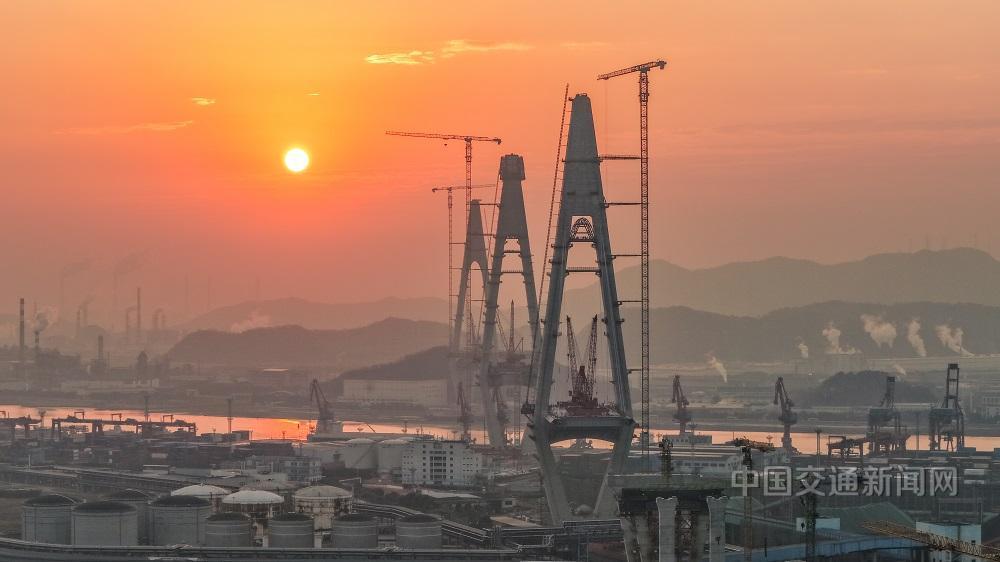 甬江特大桥横跨镇海港区与甬江入海口,全长1730米,跨径位居世界同类型桥梁首位。大桥由浙江交工集团与中交路建共同承建,建成后将串联镇海港区、北仑港区及杭州湾南岸产业带,成为宁波舟山港集疏运体系的关键枢纽。