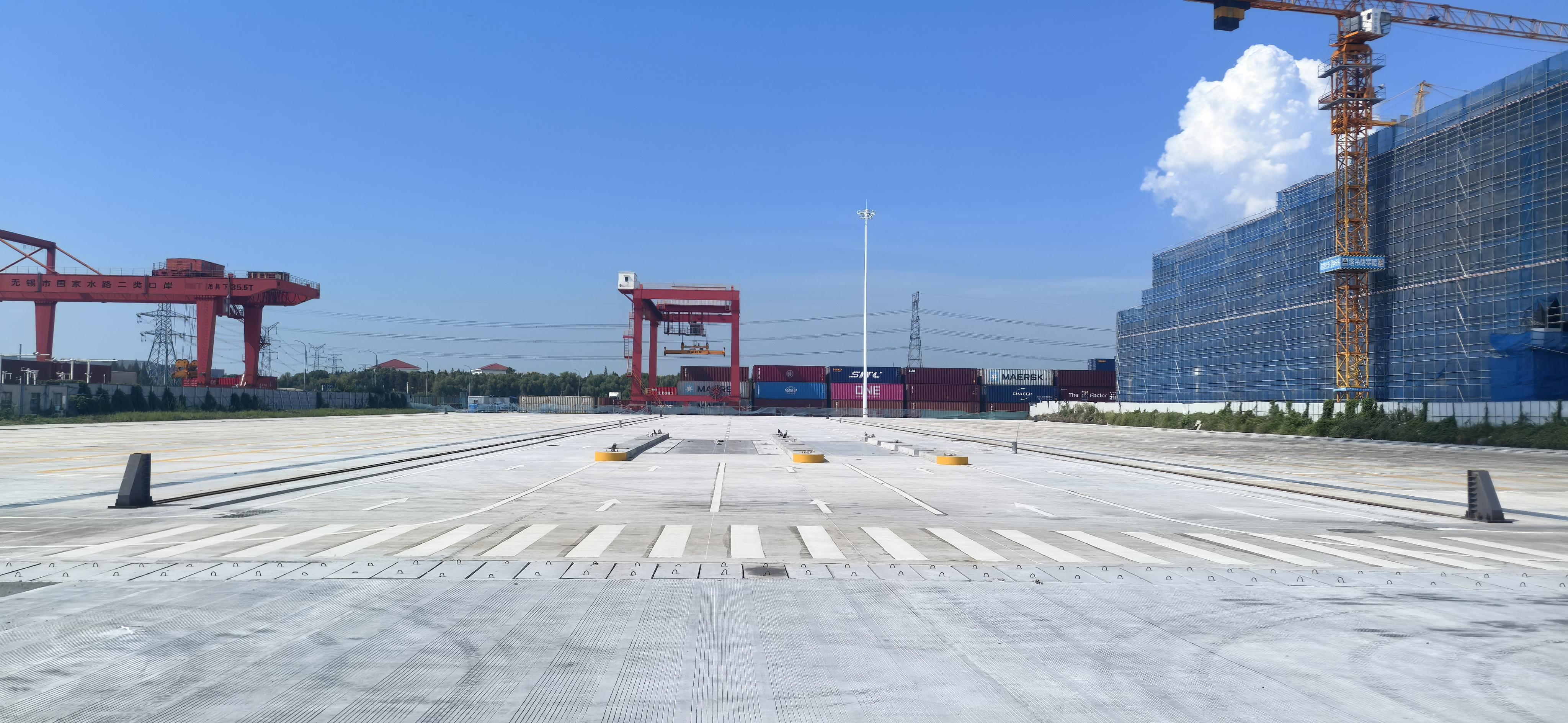 本工程属于无锡内河港配套能力提升项目,主要建设内容包括集装箱堆场、道路地基处理、轨道梁基础、卡口以及给排水、电气、消防等配套设施。施工期间,项目团队克服了工期紧张、多专业交叉作业、地基与轨道梁施工精度要求高、需满足海关监管场地规范管理等多重挑战,通过倒排工期、动态调配资源,保障工程进度;严格执行“三检制”,对关键工序实行全程旁站,加强原材料质量控制,确保各环节一次验收合格,为整体工程质量奠定了坚实基础。