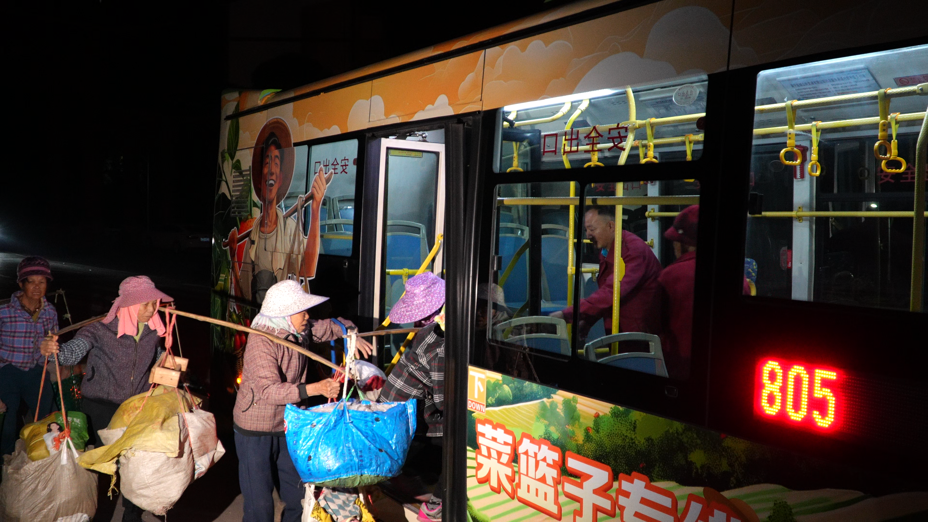 2024年年底,南宁公交把目光对准了石埠美丽南方片区的农户们——他们进城卖菜的难题,成为民生服务的突破口。经过实地调研,南宁公交将805路优化升级为“菜篮子专线”,开启了公交精准服务民生的探索。在此之前,和安村、忠良村的菜农要挑着几十斤重的担子,走1公里才能到客运站乘车,常常赶不上早市的好行情。专线开通后,始发站直接设在村口,发车时间也卡准菜农进城的早高峰,帮他们卸下“赶路的重担”。