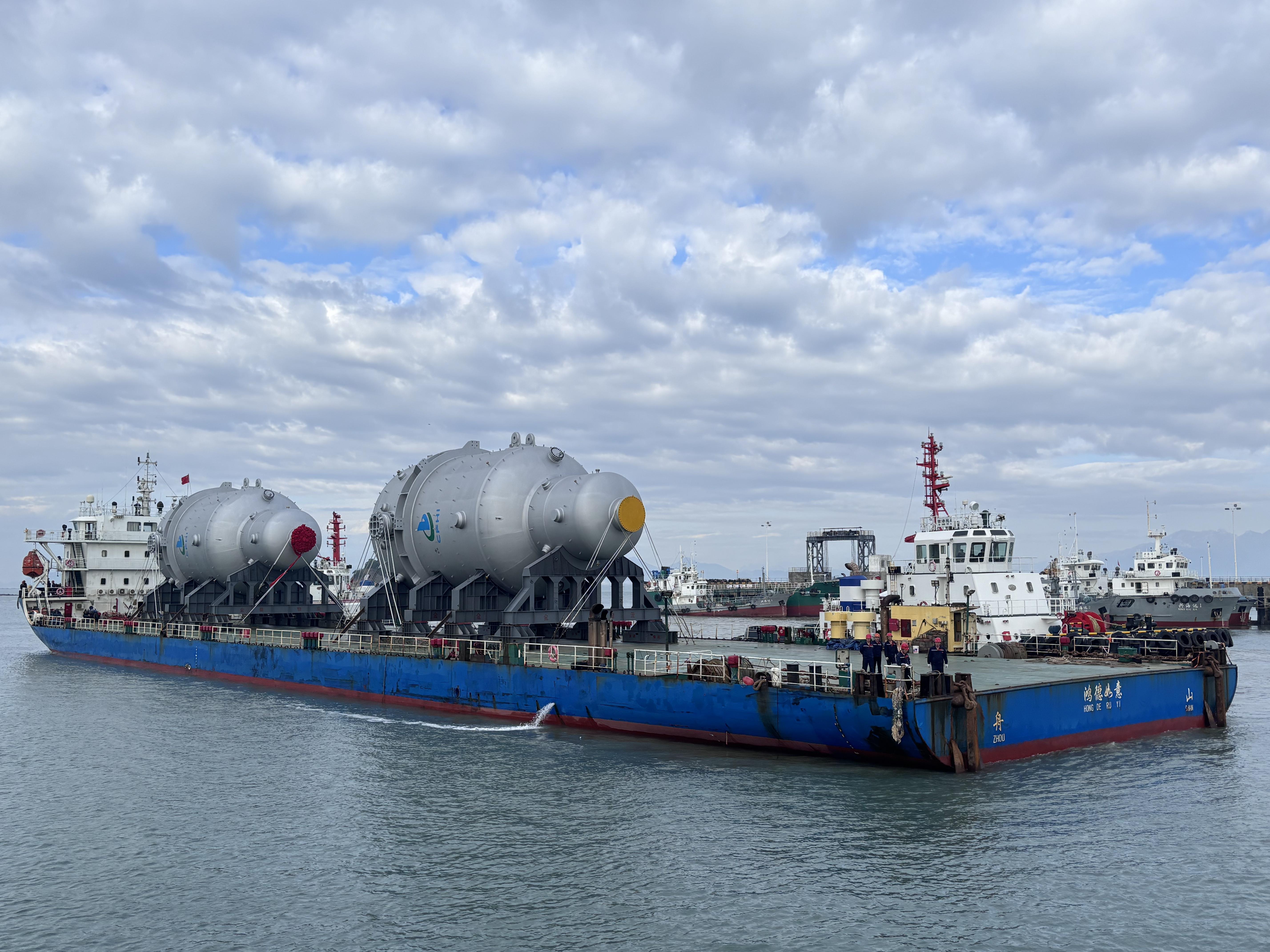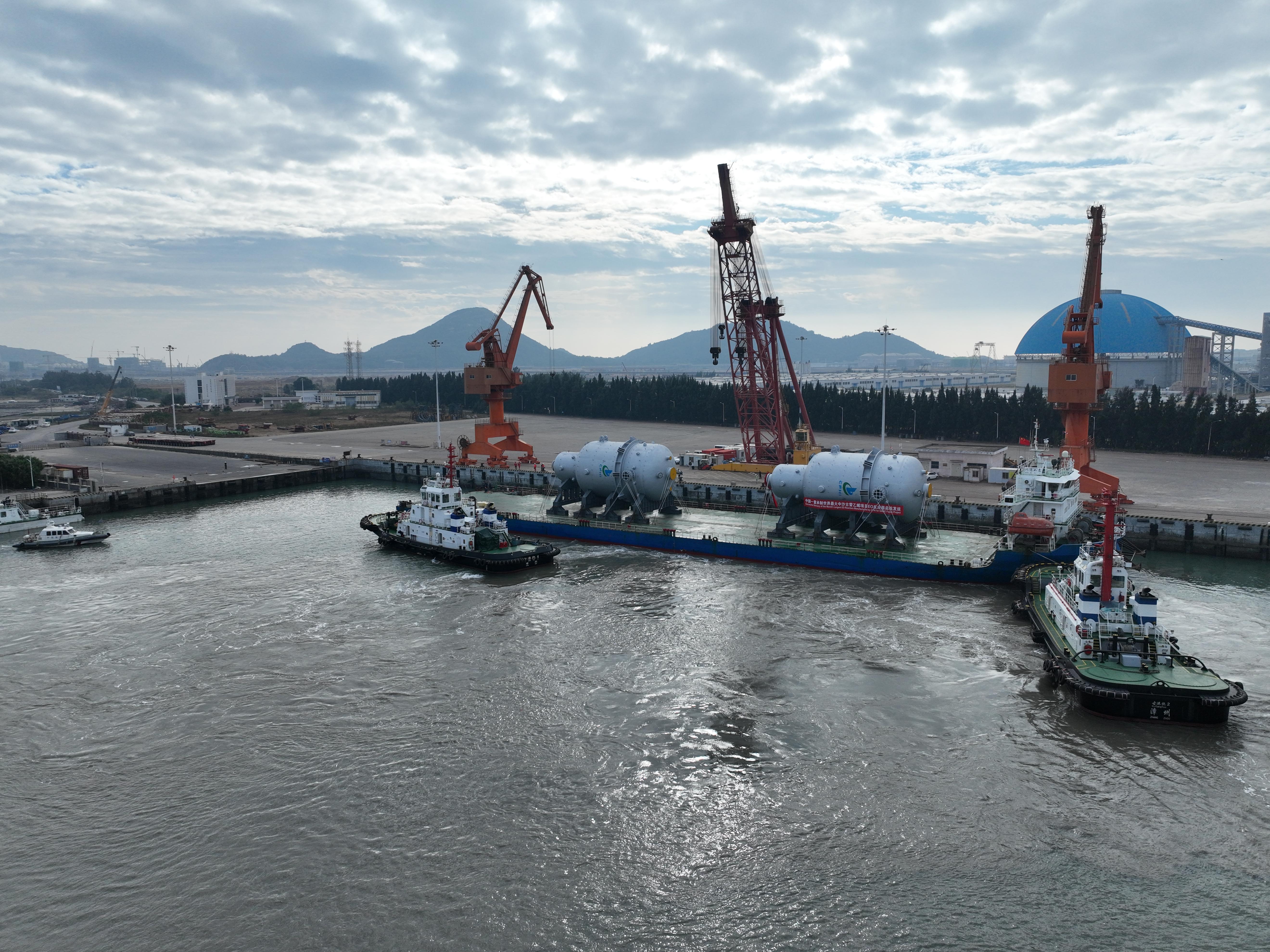 12月20日,在漳州海事局全程监护下,载运全球最大、重达1540吨的福建中沙古雷乙烯项目EO/EG装置EO反应器的“鸿德如意”轮安全靠泊古雷港区南11#泊位。该轮的顺利靠泊,标志着福建中沙古雷乙烯项目大型关键设备的海运任务圆满完成。