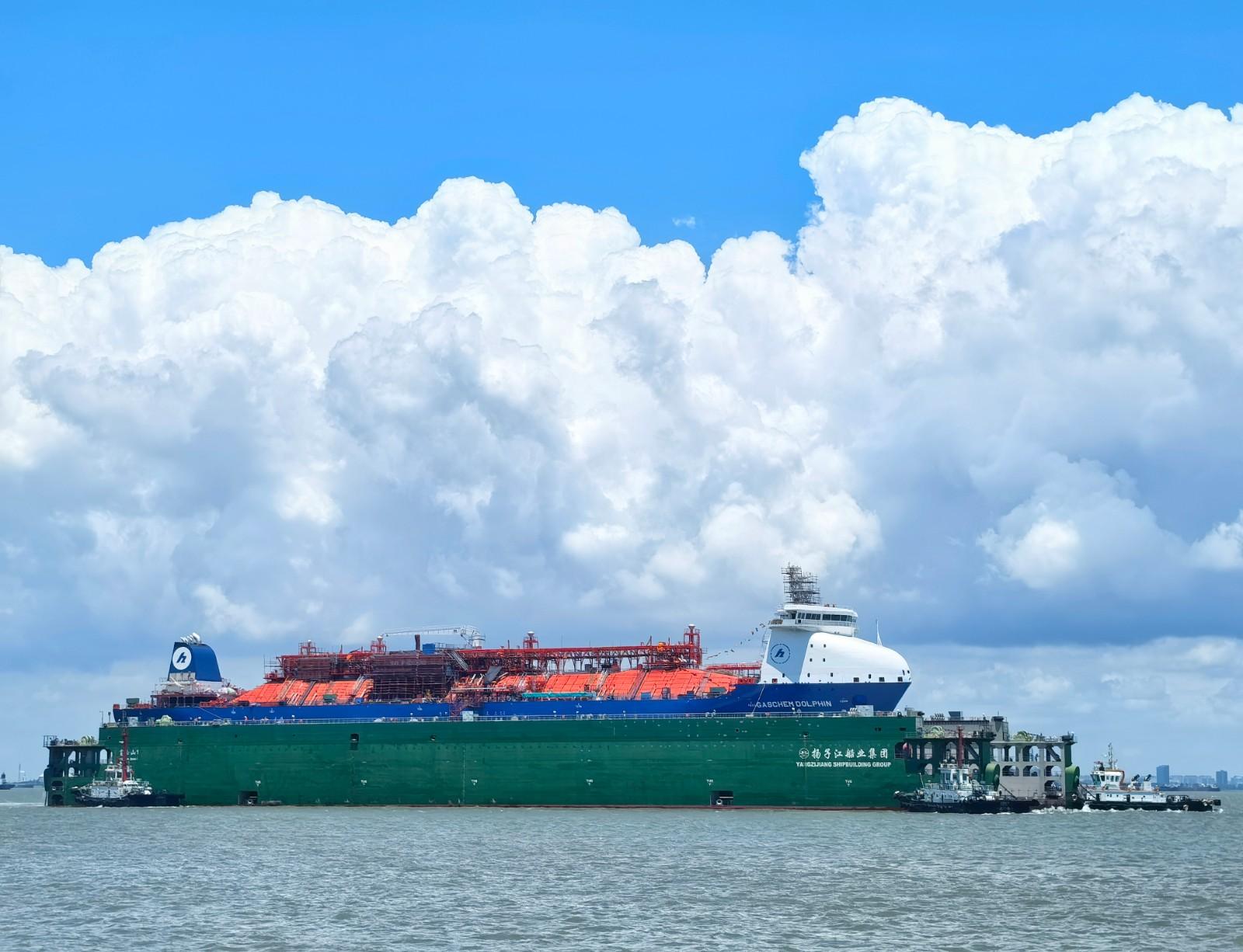 2025年7月23日,太仓海事局精心维护扬子三井船厂36000方双燃料液化气体运输船顺利下水。张伟 摄