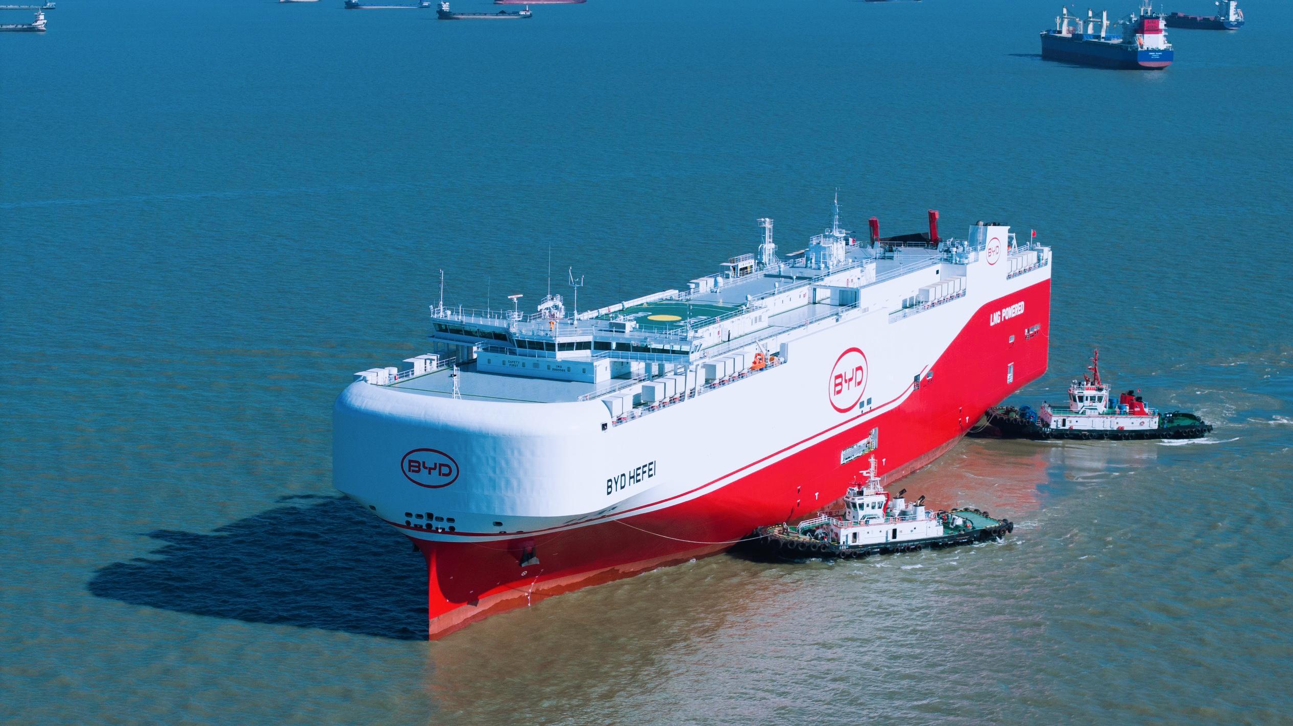 2025年1月14日,清洁能源滚装船“比亚迪合肥”轮靠泊太仓海通码头,顺利完成该轮首航。李天培 摄