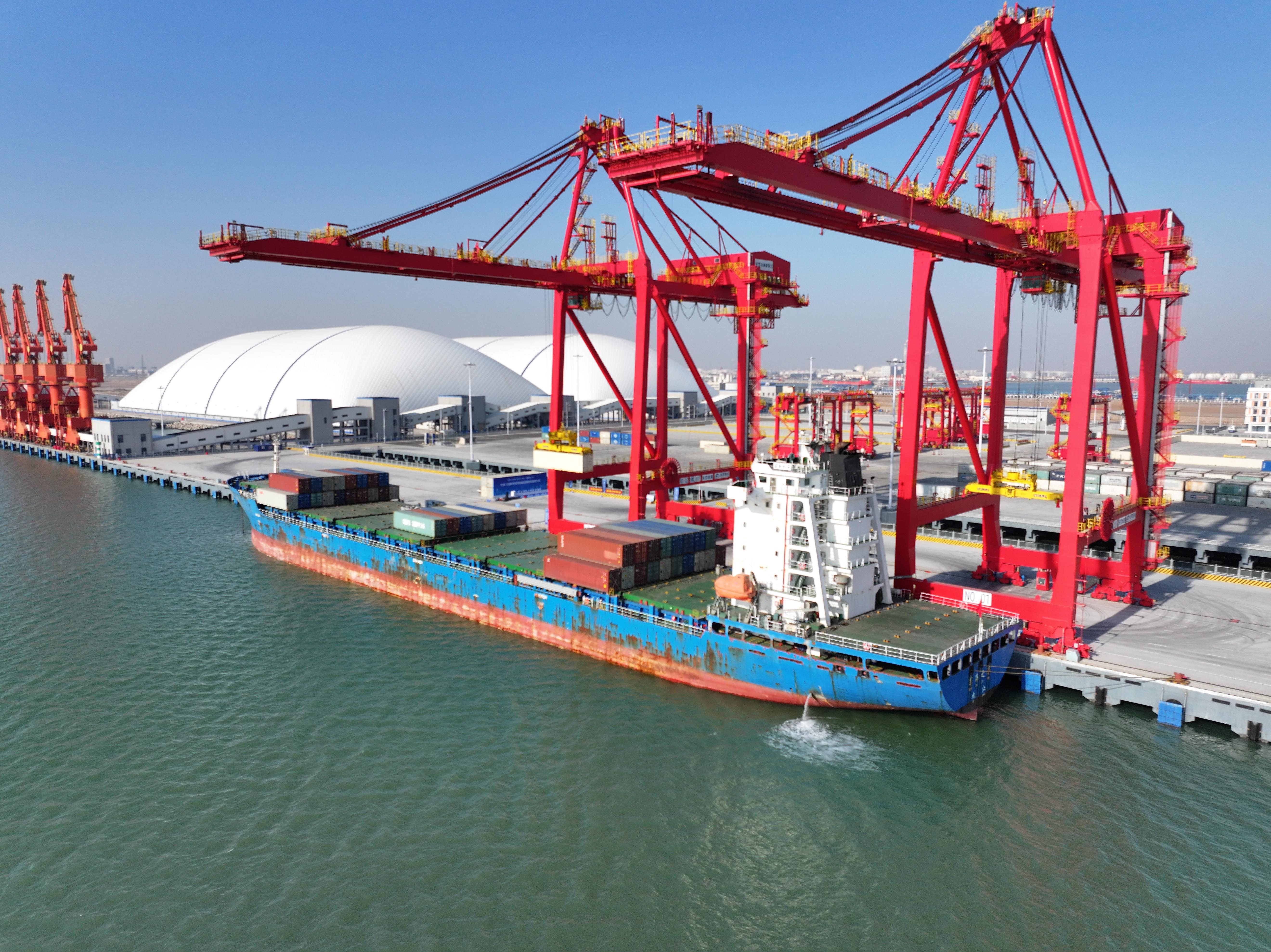 东营港区一突堤集装箱码头是东营市首个专业化集装箱码头,设计年通过能力30万标箱,填补了鲁北地区无专业集装箱码头的空白,为临港产业企业大宗货物进出口提供更加经济、便捷、通畅的集装箱物流通道。新航线的开通进一步完善山东港口整体航线网络布局,持续强化渤海湾港作为黄河流域便捷出海通道的枢纽辐射效能,为服务黄河流域生态保护和高质量发展注入强劲新动能。