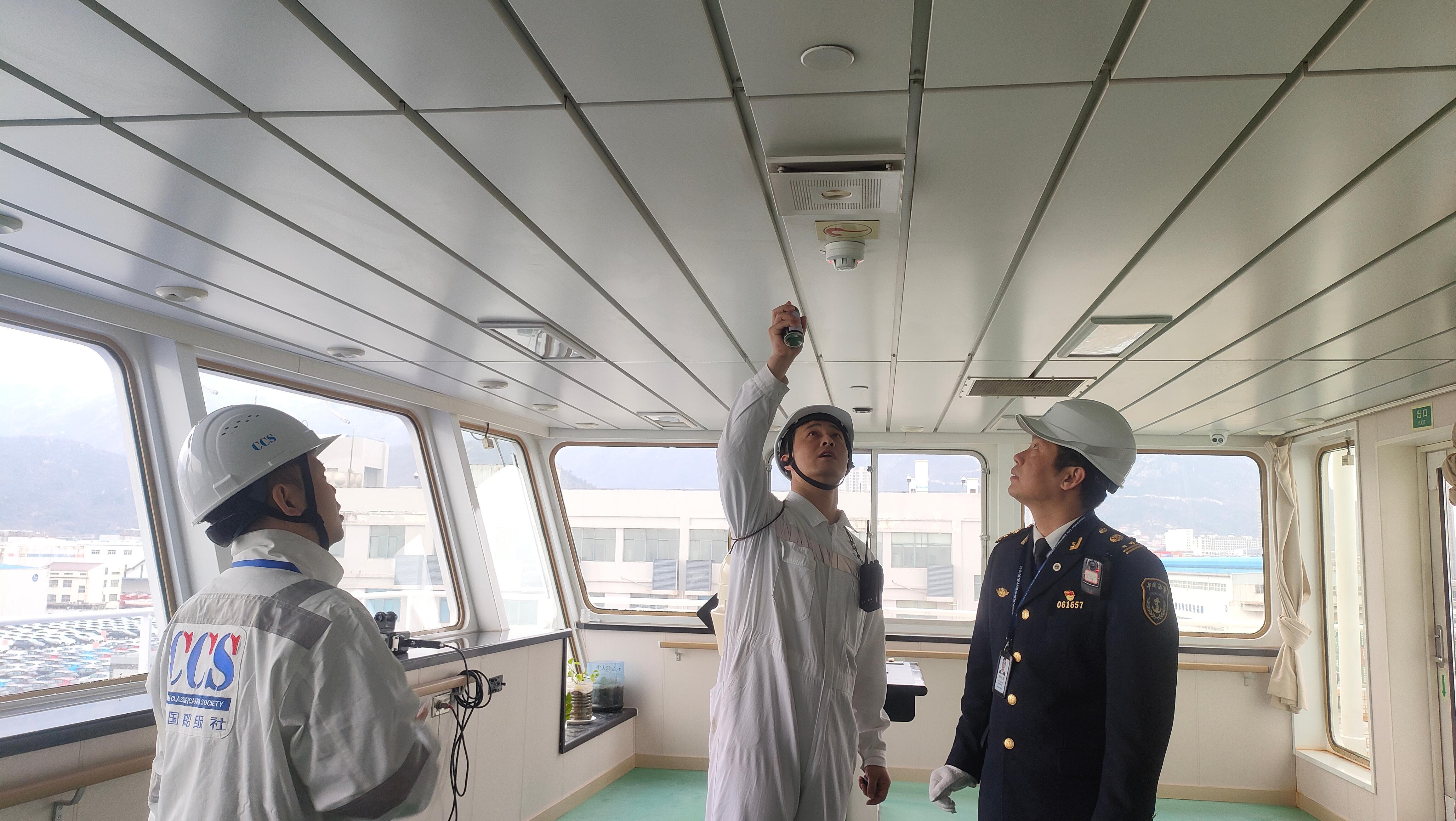1月19日,连云港海事局联合中国船级社江苏分社、连云港市交通运输局,对辖区中韩客货班轮“和谐云港”轮开展春运前联合安全检查,全力保障春运期间海上客运安全。