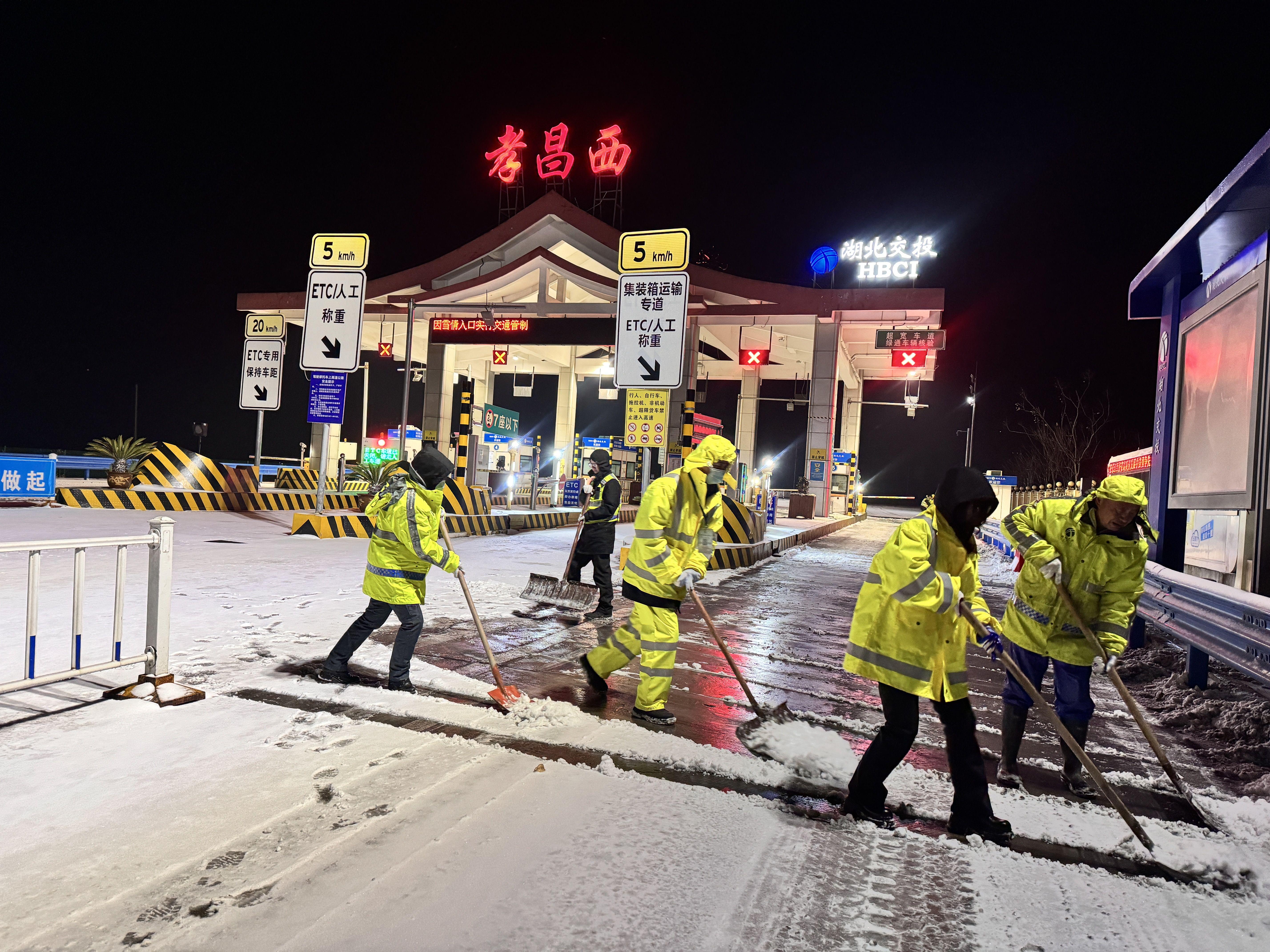 为确保所辖路段安全通行,孝昌西管理所迅速组织力量,加大巡查频次,重点对收费广场、匝道、弯坡等易结冰区域进行实时监测。风雪之中,身着“柠檬黄”作业服的工作人员不畏严寒,连续作战,利用铲雪车、撒布机等设备开展循环除冰作业,并配合人工清扫,及时清除路面积雪暗冰。他们用坚实的脚步和有力的臂膀,在寒风中守护着每一条“安全通道”。