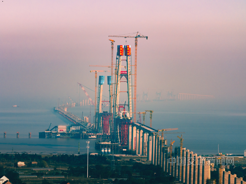 日前,随着37.5立方米混凝土全部浇筑完毕,通苏嘉甬高铁杭州湾跨海大桥北航道桥高达200米的8号主塔成功封顶。此次封顶的8号主塔所在的北航道桥总长932.7米、主跨450米,创下在建世界最大跨度无砟轨道斜拉桥的纪录。目前全桥建设进度达75%,今年将实现主体结构贯通。