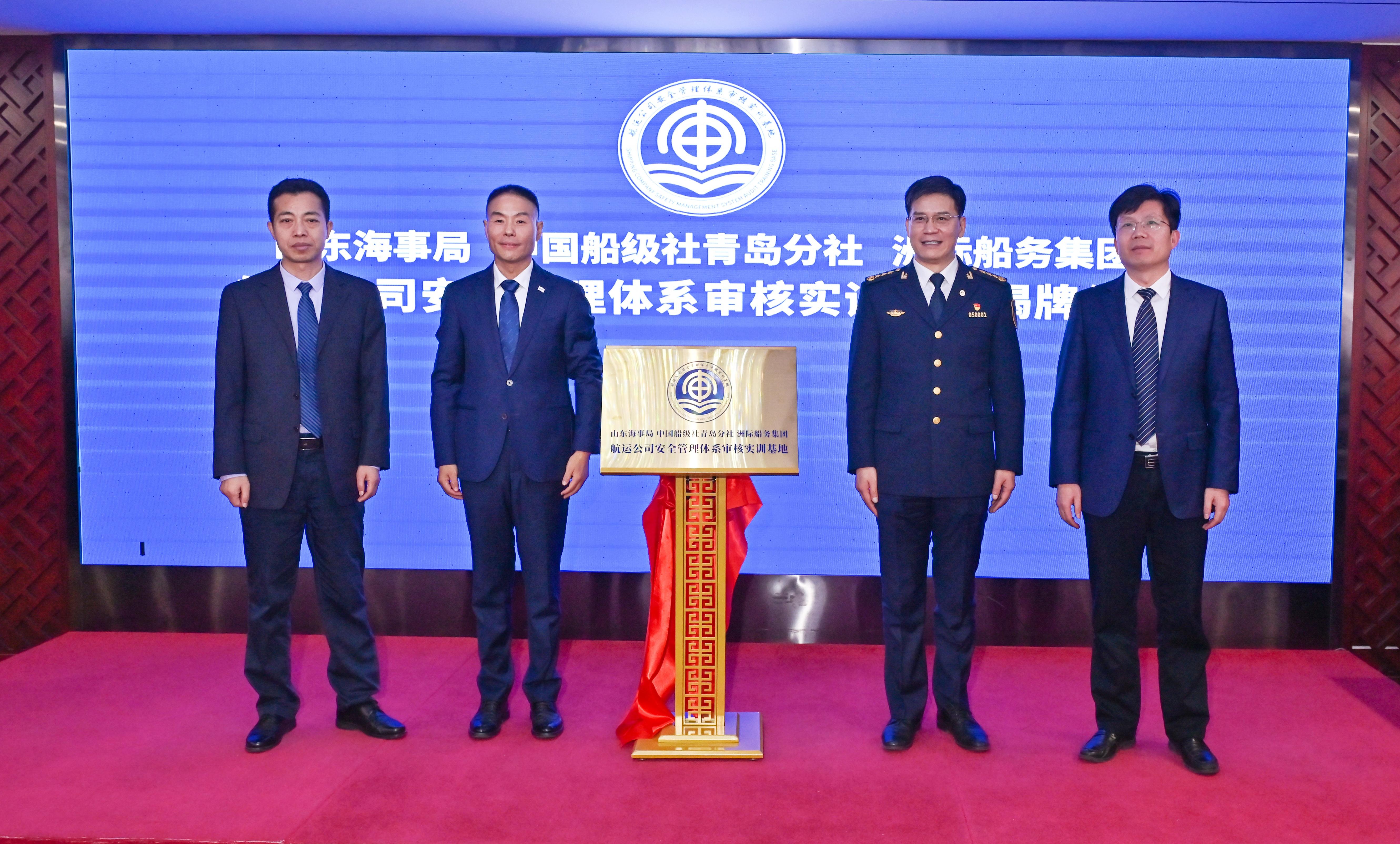 山东海事局党组书记、局长马道玖,中国船级社青岛分社总经理于怀明,洲际船务集团董事长郭金魁、总裁陈泽凯、洲际船管集团总裁赵勇,交通运输部水运科学研究院青岛航运发展研究院院长李亚斌、资深审核员陈文慧以及青岛部分船舶管理公司主要负责人出席揭牌仪式。
