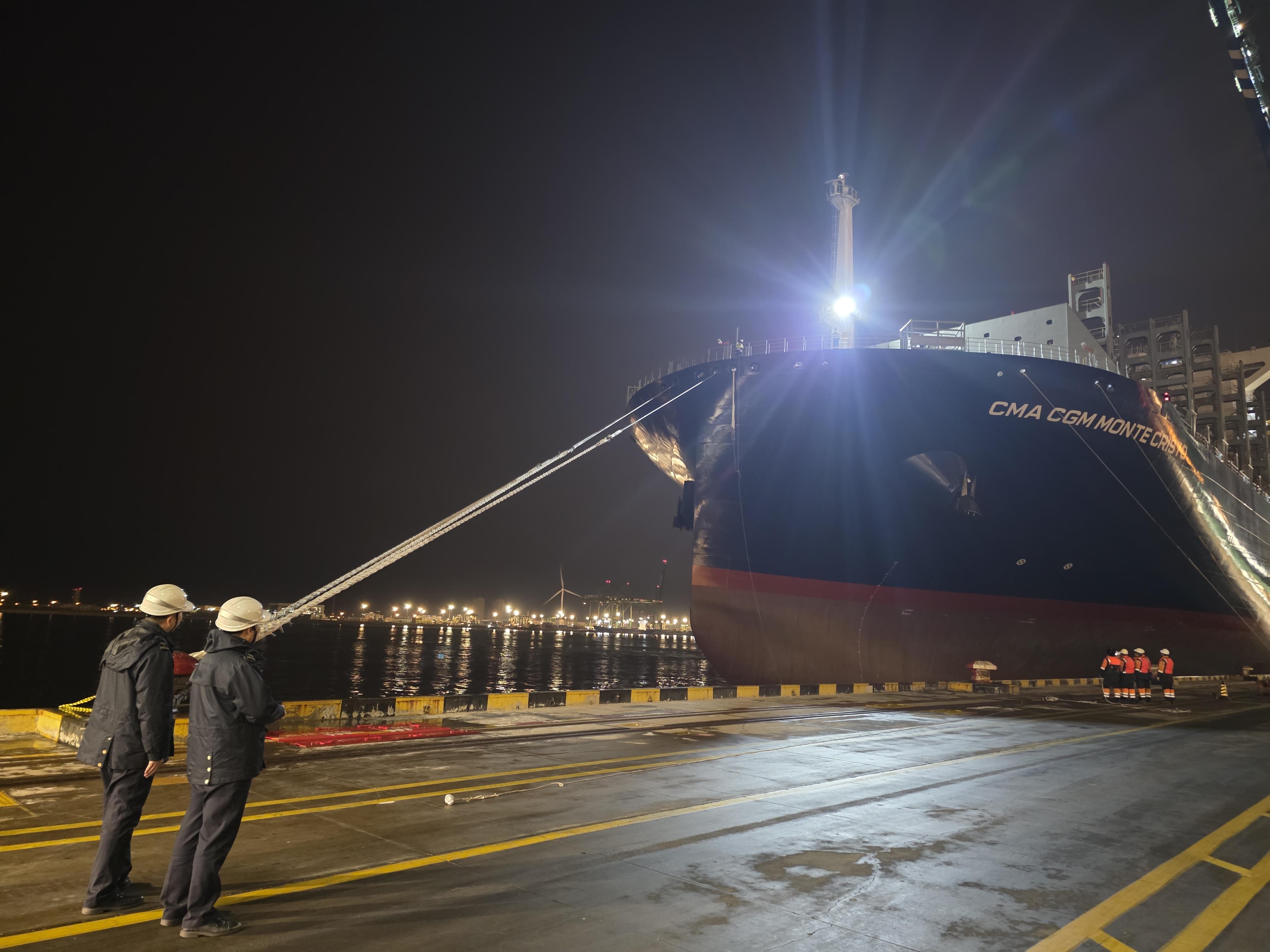 2026年1月27日,法国达飞海运集团所属“CMA CGM MONTE CRISTO(达飞基督山)”轮在天津海事局全程保障下,安全靠泊天津港第二集装箱码头,顺利开启该轮交付后的首个航次。天津海事局高度重视,在交通组织、安全靠泊、现场监管、应急热备等多个层面精心安排,全力保障该轮首航圆满成功。