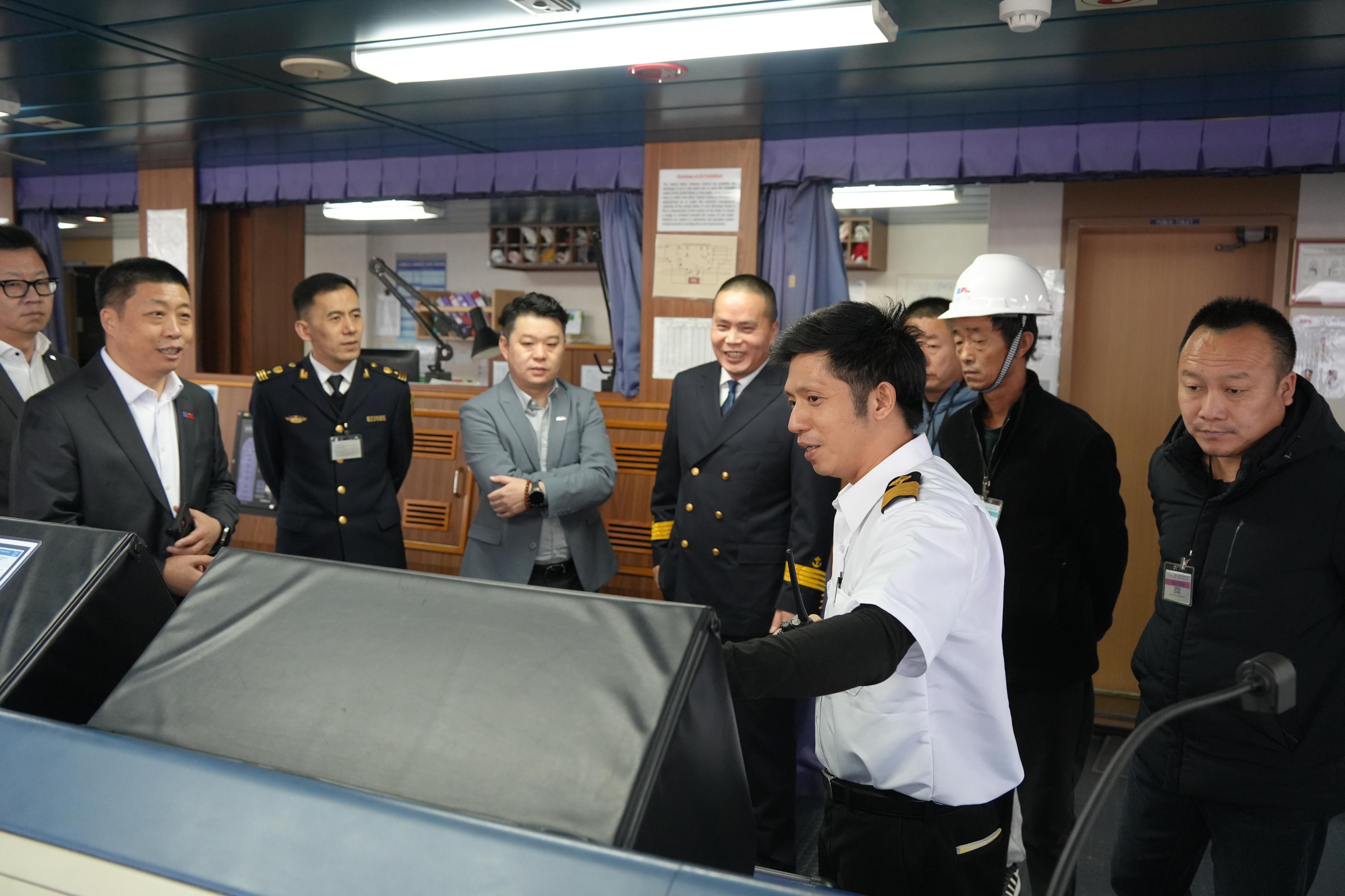 活动伊始,“虎城”轮船长带领全体渔船船长登上驾驶台,开启沉浸式观摩学习之旅,让渔船船长近距离感受商船航行操作逻辑。在雷达操作区、电子海图显示与信息系统(ECDIS)终端、VHF通信设备前,商船船长结合多年航行实操经验,细致讲解导航设备的工作原理、操作规范及应急处置流程,重点演示船舶转向、变速等关键操作对周边船舶的影响,破解渔船船长对商船操作的认知盲区。针对“商船航行盲区范围”“大型船舶制动特性”等渔船船长普遍关心的核心问题,商船船长通过实物展示、典型事故案例拆解的方式逐一答疑解惑,将抽象的航行规则转化为具象的实操认知,让渔船船长对商船航行特点有了更直观、深入的理解。