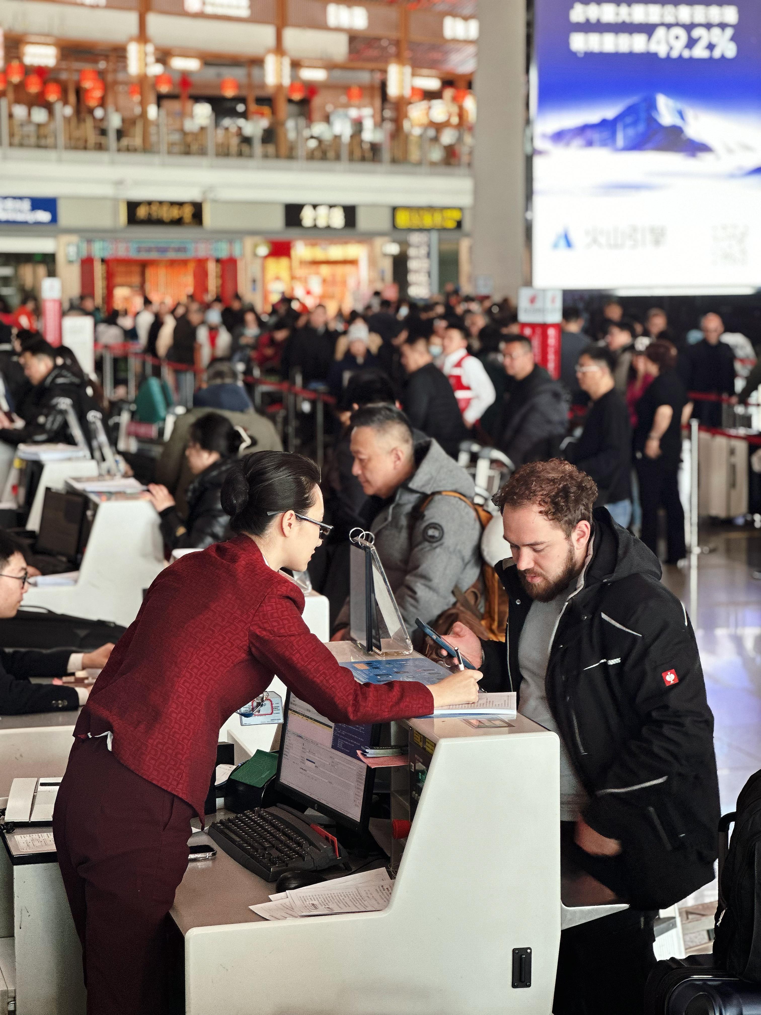 围绕春运旅客在便捷出行、携带宠物、行李打包等方面的需求,首都机场推出冬衣寄存、电瓶车“8分钟”急客承诺、萌宠出行套餐、奶皮子酸奶类食品专业打包等特色服务。同时,持续关注老年、儿童以及行动不便旅客的需求,推出五款特殊旅客识别手环,在值机、安检等全流程高效识别并精准服务,近期还在老年旅客手环上增添服务二维码,扫码即可显示全部权益列表及相应位置导引。2月2日,首都机场将新增首都机场至北京朝阳站、首都机场至清河站两条客运班线,新线路开通后将实现对北京7个主要铁路枢纽的巴士线路覆盖,为旅客搭建起更便捷的空铁联运通道。