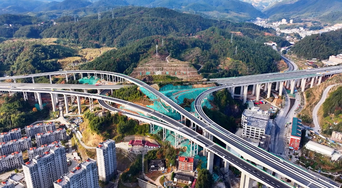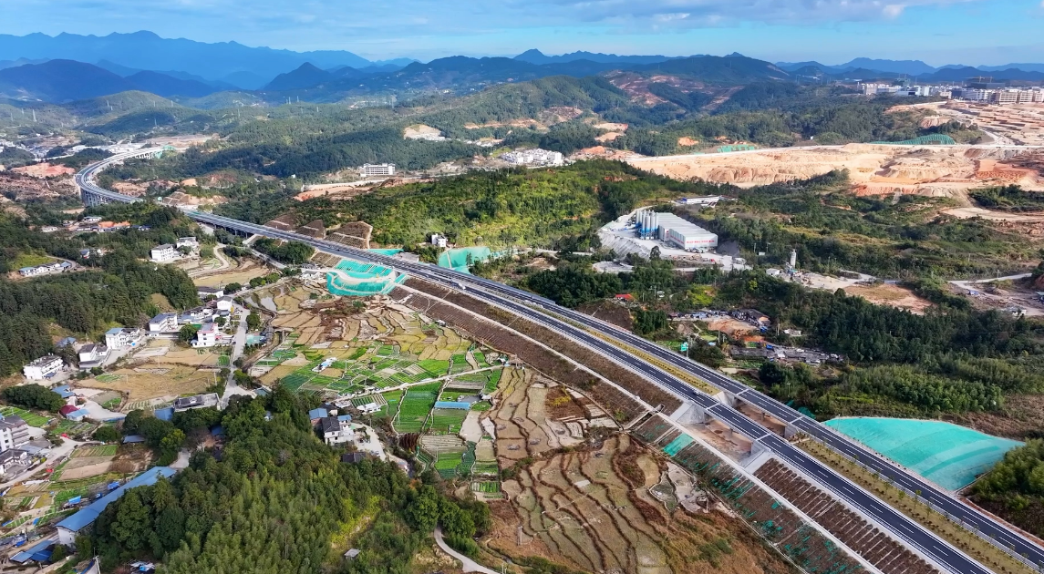 该项目将“微创施工”理念贯穿建设全程,通过系列创新举措成为山区高速公路绿色建设标杆。项目采用泥沙分离器、一体化污水处理系统等环保技术,实现施工“零污染”;合理利用隧道洞渣减少弃渣,同步打造“车在画中行”的生态景观;贯彻落实“六个预留”“七个结合”,修建96公里便民便道,有效带动沿线乡村振兴,实现工程建设与生态保护、民生改善的深度融合。